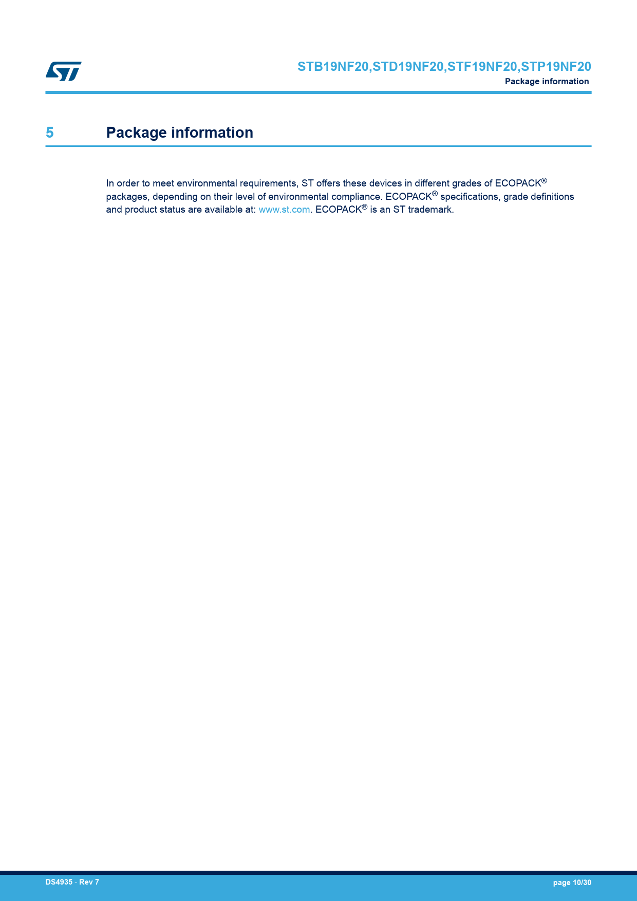 STB19NF20,STD19NF20,STF19NF20,STP19NF20. Package information. DS4935. Rev 7. page 10/30