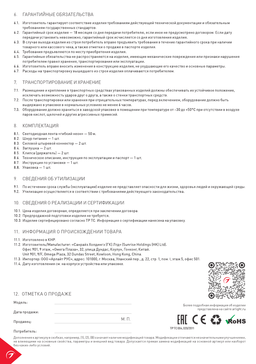 Datasheet ARL-NEON-2615-SIDE 230V (Arlight) - 4