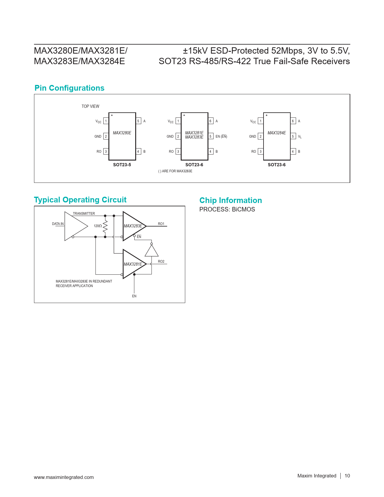 PROCESS: BiCMOS TRANSMITTER DATA IN 120Ω RO1 MAX3283E EN RO2 MAX3281E MAX3281E/MAX3283E IN REDUNDANT RECEIVER APPLICATION EN www.maximintegrated.com Maxim Integrated │ 10