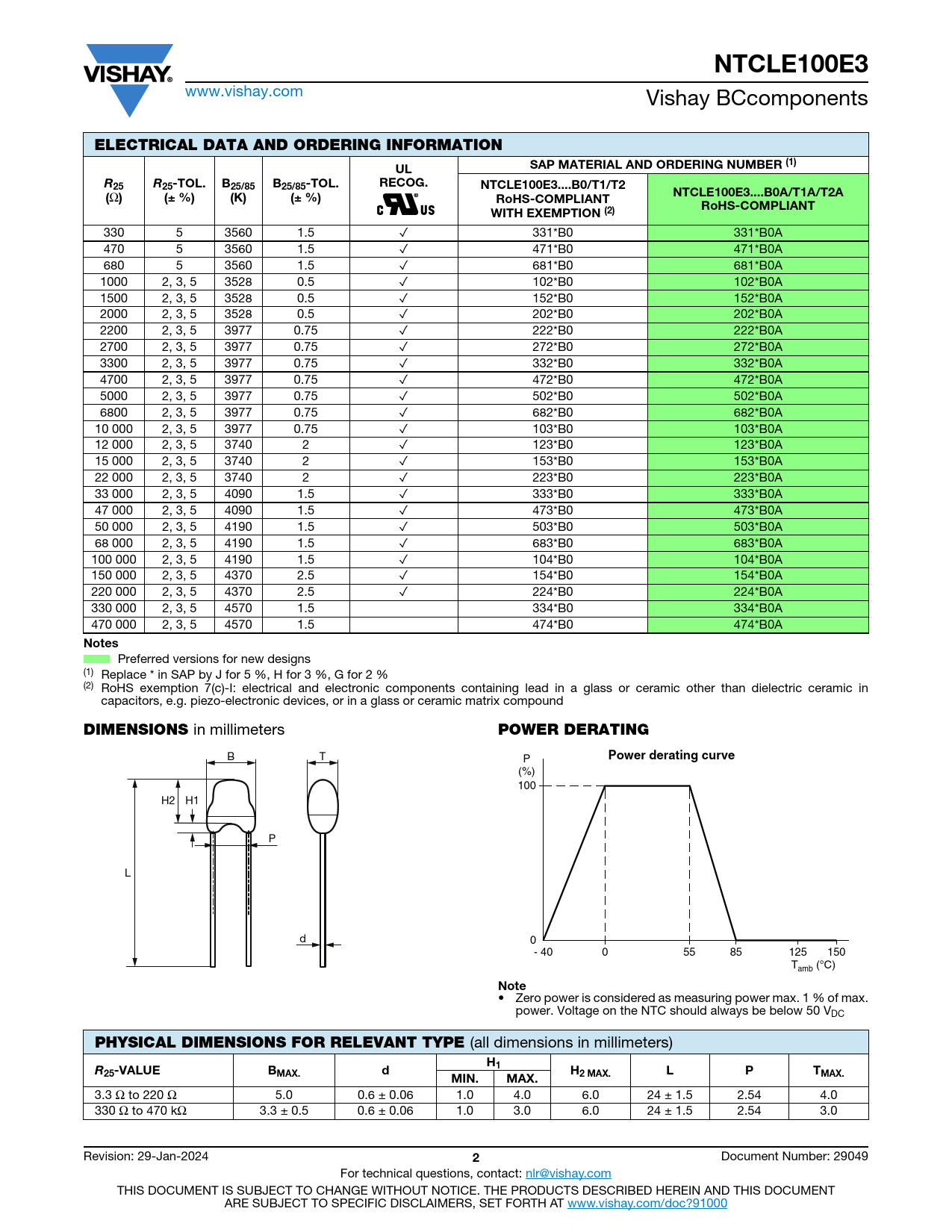 ELECTRICAL DATA AND ORDERING INFORMATION UL SAP MATERIAL AND ORDERING NUMBER (1) R 25 R 25-TOL. B25/85 B25/85-TOL. RECOG. NTCLE100E3..B0/T1/T2 (