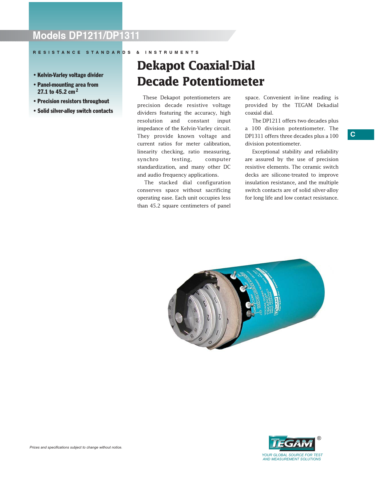 Models DP1211/DP1311 R E S I S T A N C E S T A N D A R D S & I N S T R U M E N T S Dekapot Coaxial-Dial