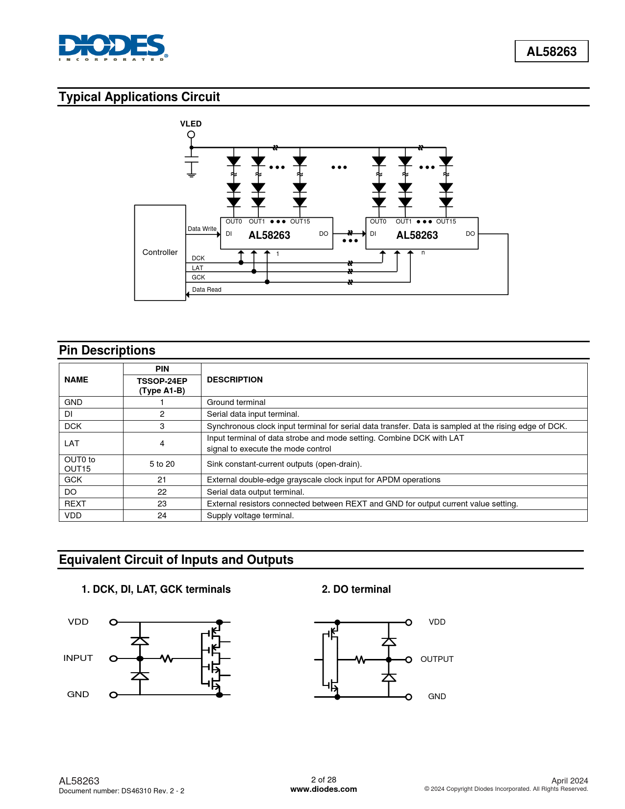 AL58263. Typical Applications Circuit. VLED. Pin Descriptions. PIN. NAME. TSSOP-24EP. DESCRIPTION. (Type A1-B)