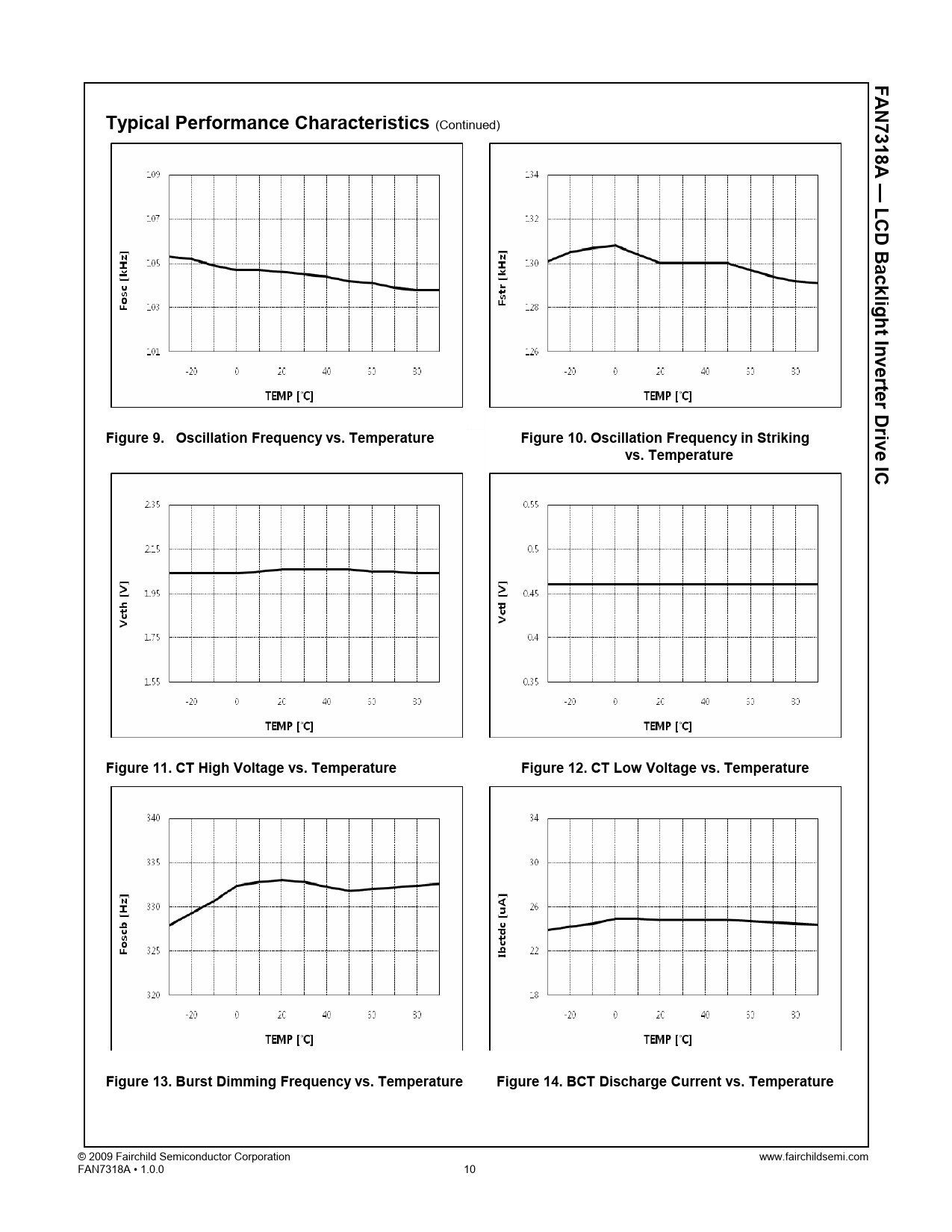 — LC D B a cklight Invert e r D rive IC Figure 9. Oscillation Frequency vs. Temperature Figure 10. Oscillation Frequency in Striking vs. Temperature Figure 11. CT High Voltage vs. Temperature Figure 12. CT Low Voltage vs. Temperature Figure 13. Burst Dimming Frequency vs. Temperature Figure 14. BCT Discharge Current vs. Temperature