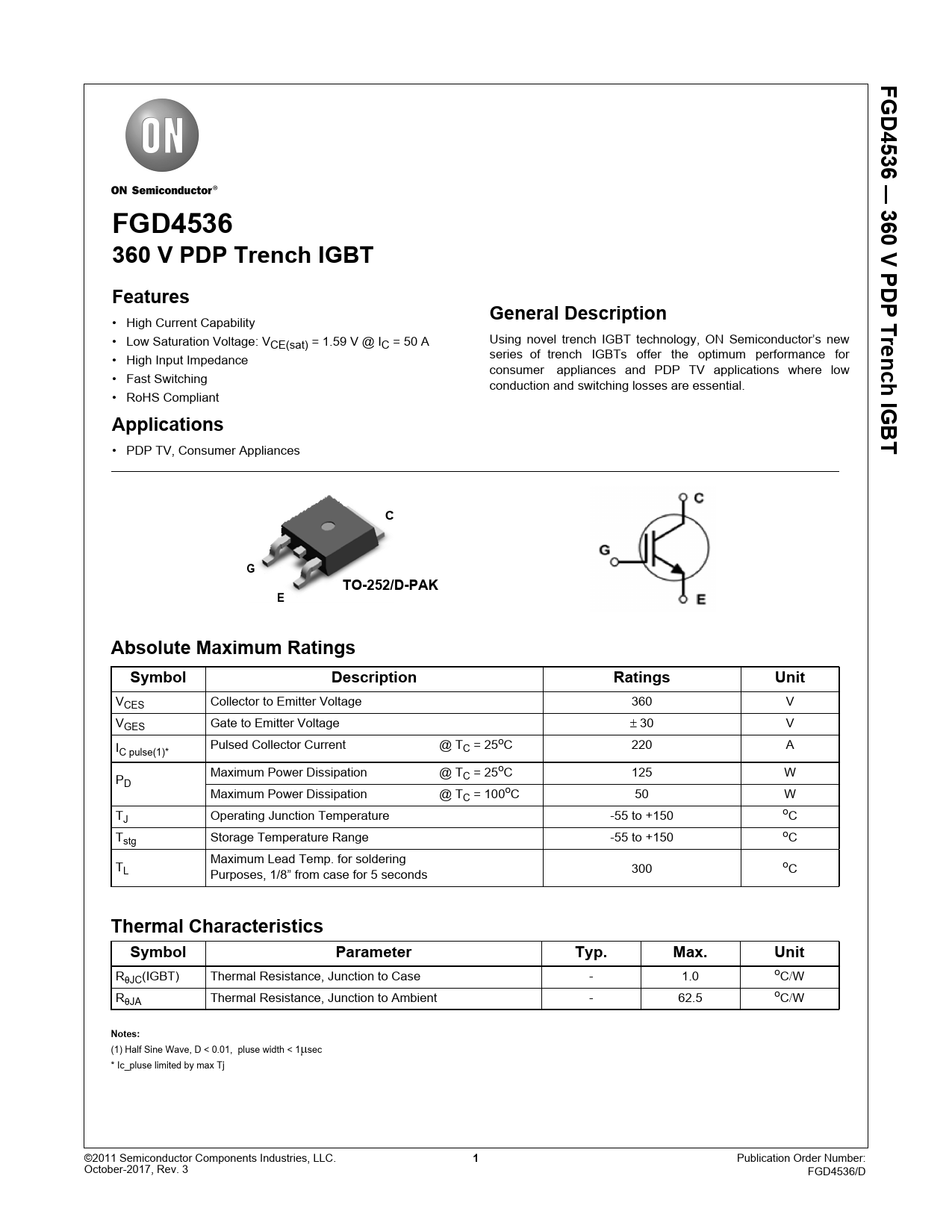 FGD4536. — 360 V PDP Trench IGBT. FGD4536 360 V PDP Trench IGBT. Features. General Description. Applications. TO-252/D-PAK