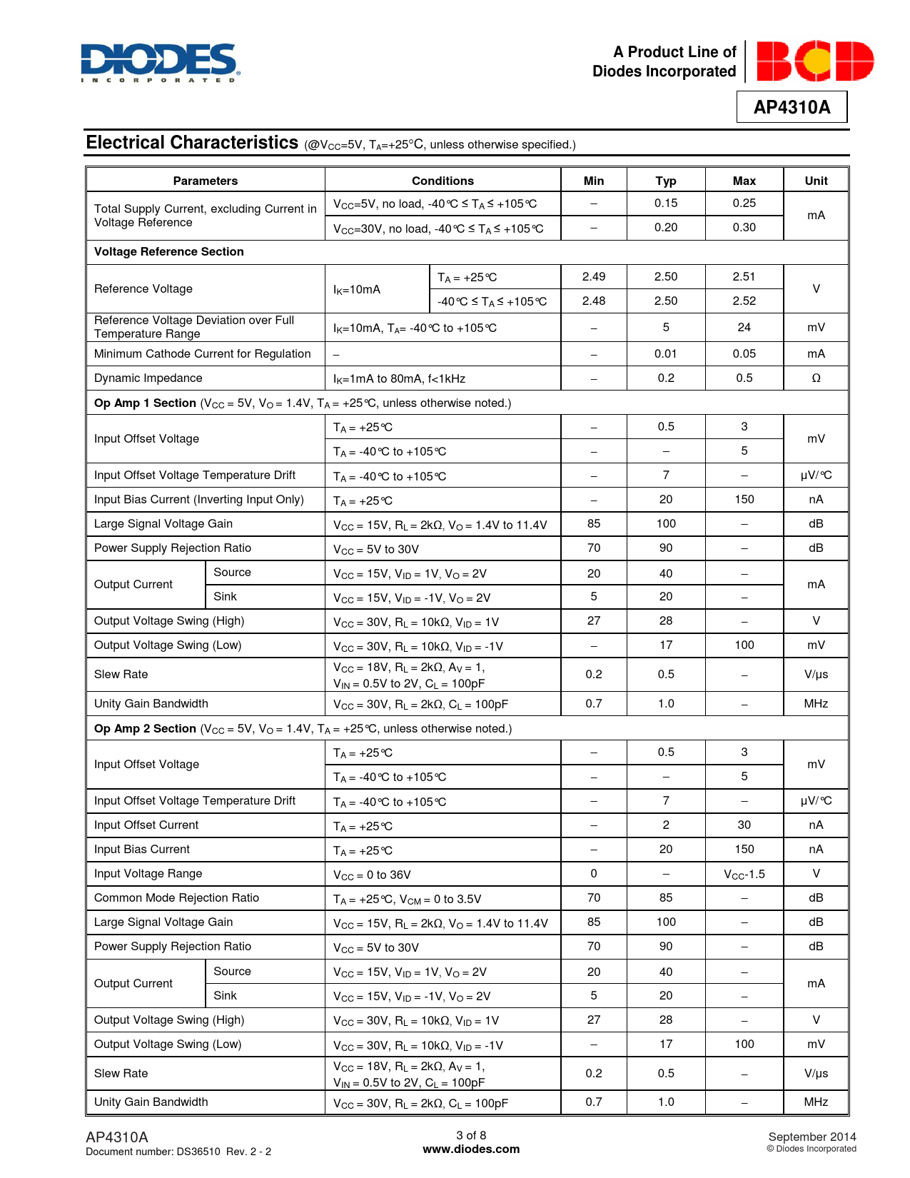 A Product Line of. Diodes Incorporated. AP4310A. Electrical Characteristics. Parameters. Conditions. Min. Typ. Max. Unit