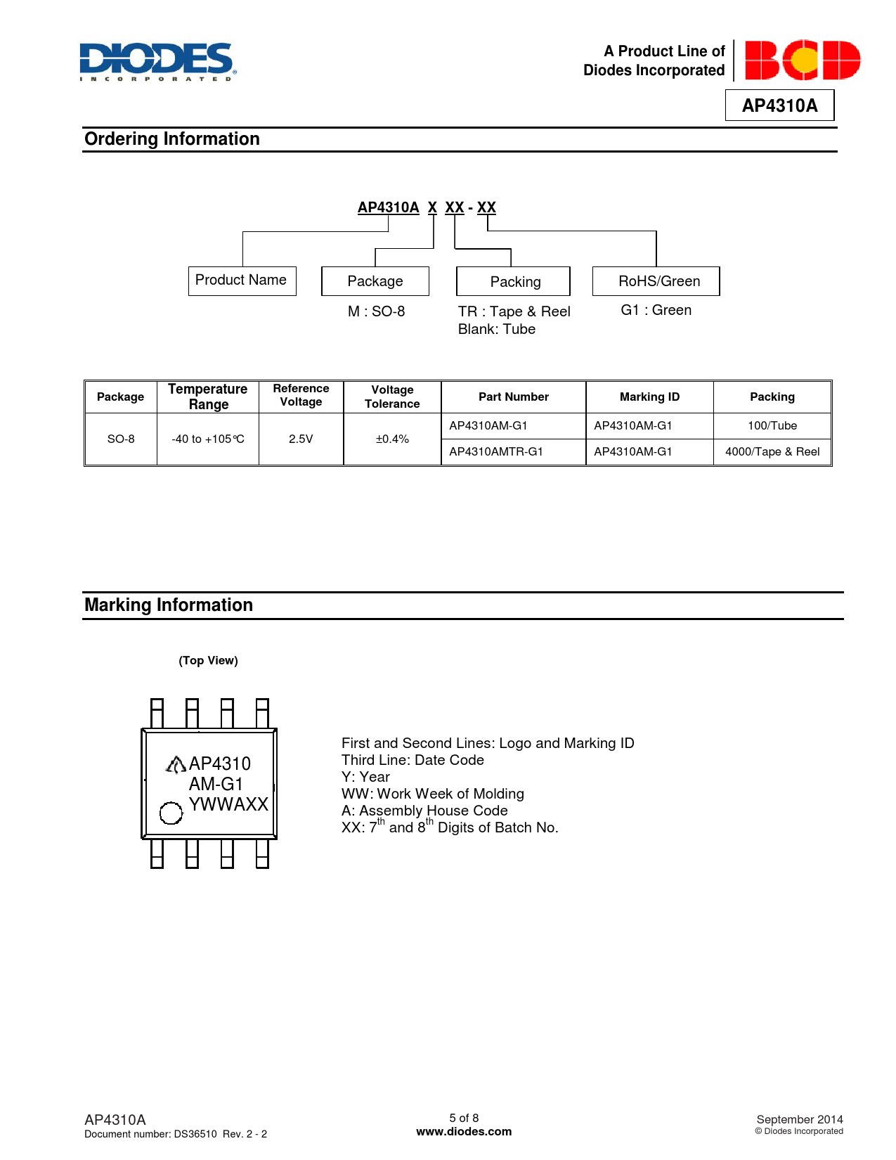 A Product Line of. Diodes Incorporated. AP4310A. Ordering Information. AP4310A X XX - XX. Temperature. Reference. Voltage. Package