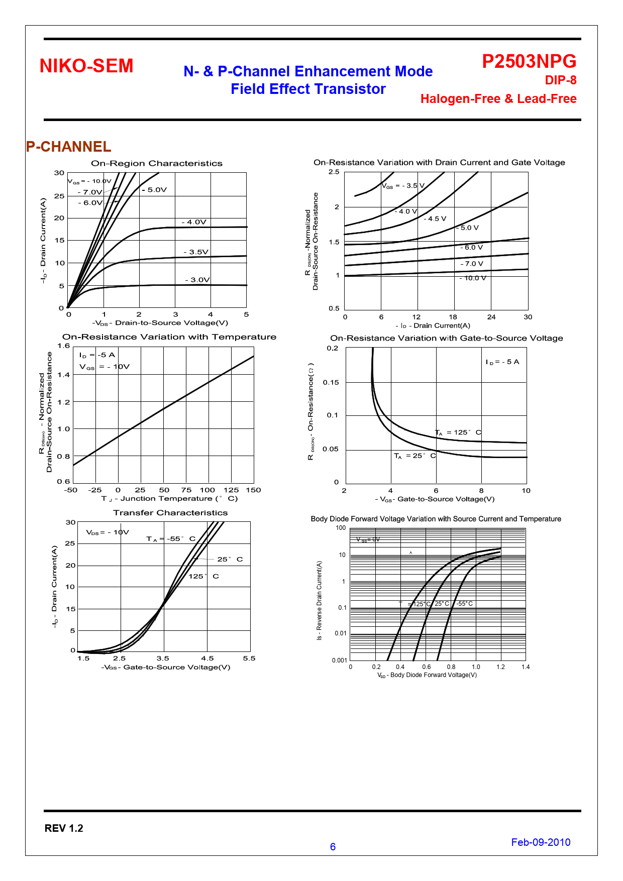 Páginas / Página7 / 6 — P2503NPG. NIKO-SEM. N- & P-Channel Enhancement Mode. DIP-8. Field …