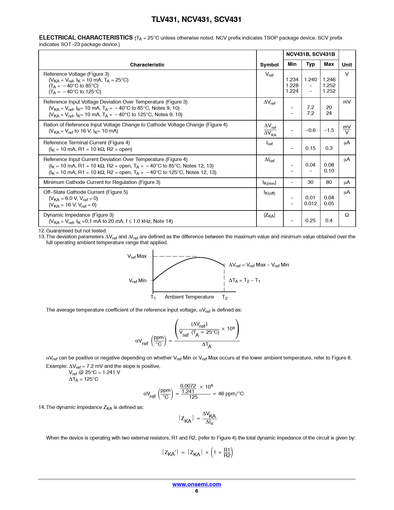 TLV431, NCV431, SCV431. ELECTRICAL CHARACTERISTICS. NCV431B, SCV431B. Characteristic. Symbol. Min. Typ. Max. Unit. www.onsemi.com