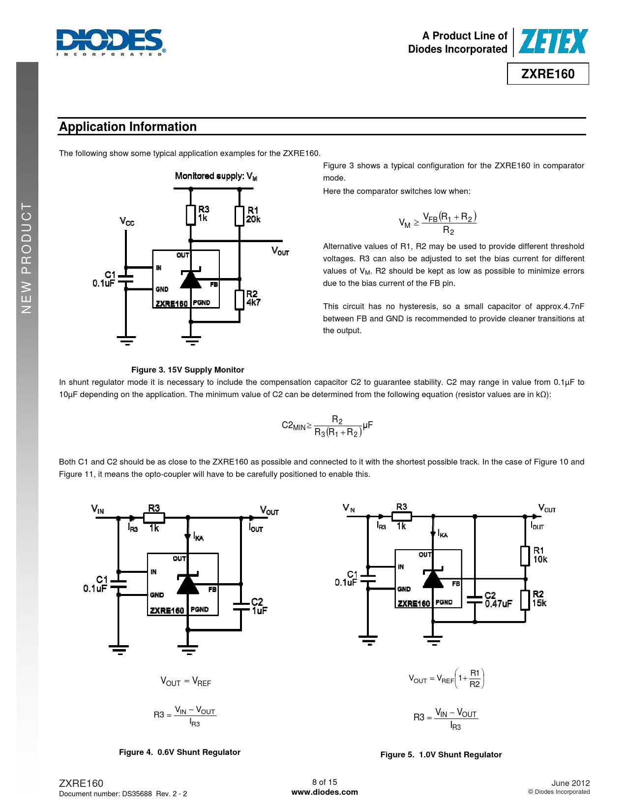 A Product Line of. Diodes Incorporated. ZXRE160. Application Information. NEW PROD. Figure 3. 15V Supply Monitor