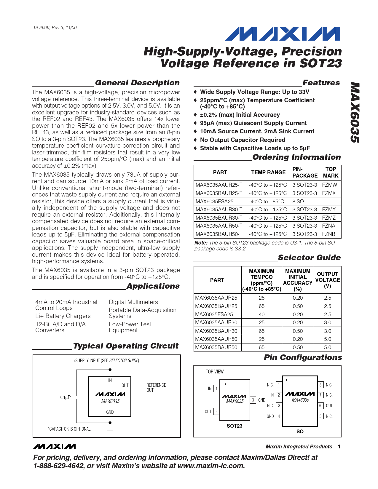 SO to a 3-pin SOT23. The MAX6035 features a proprietary ♦