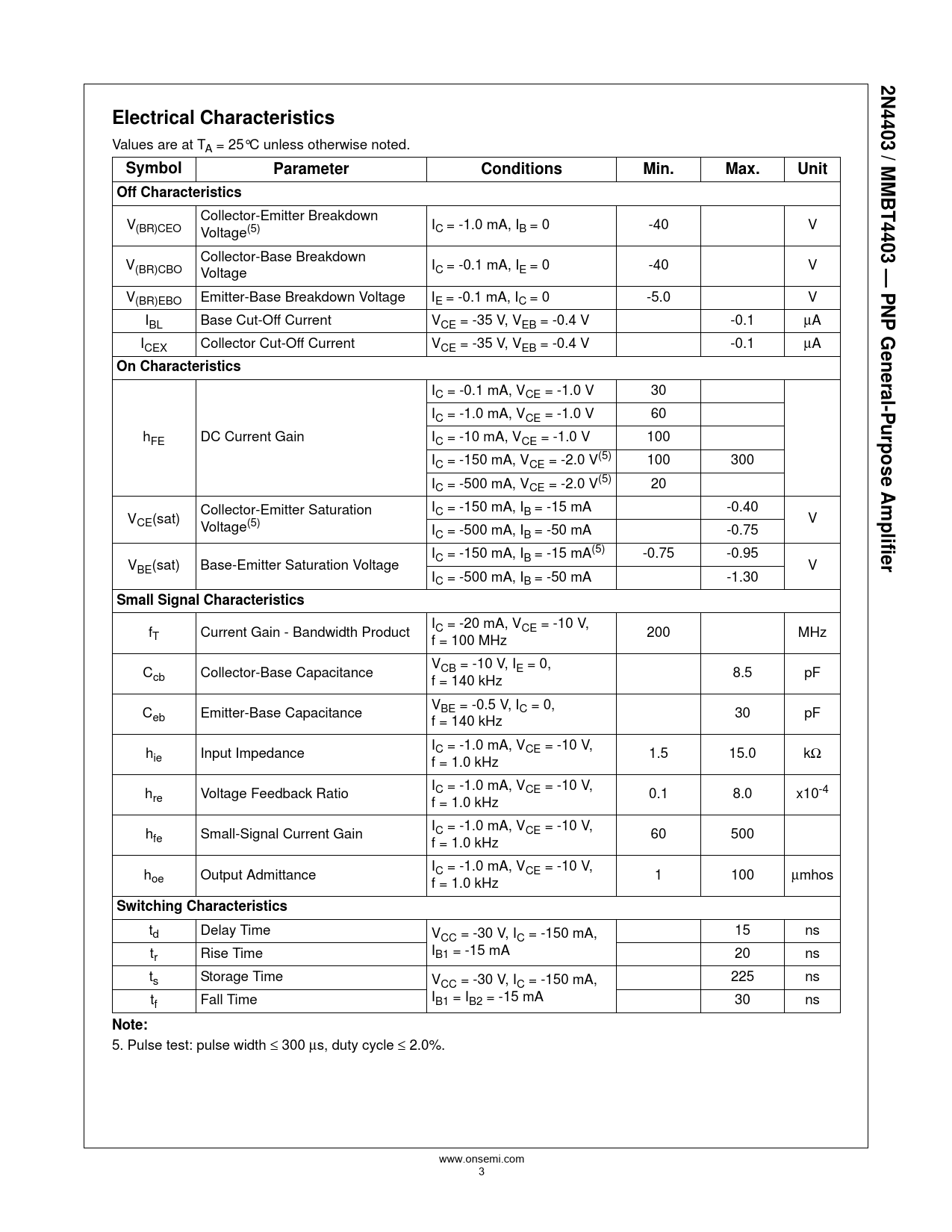5. Pulse test: pulse width ≤ 300 μs, duty cycle ≤ 2.0%. www.onsemi.com 3