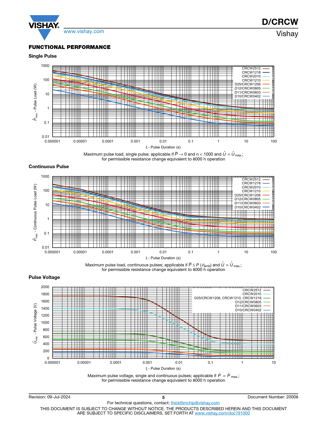 D/CRCW. FUNCTIONAL PERFORMANCE Single Pulse. Continuous Pulse. Pulse Voltage