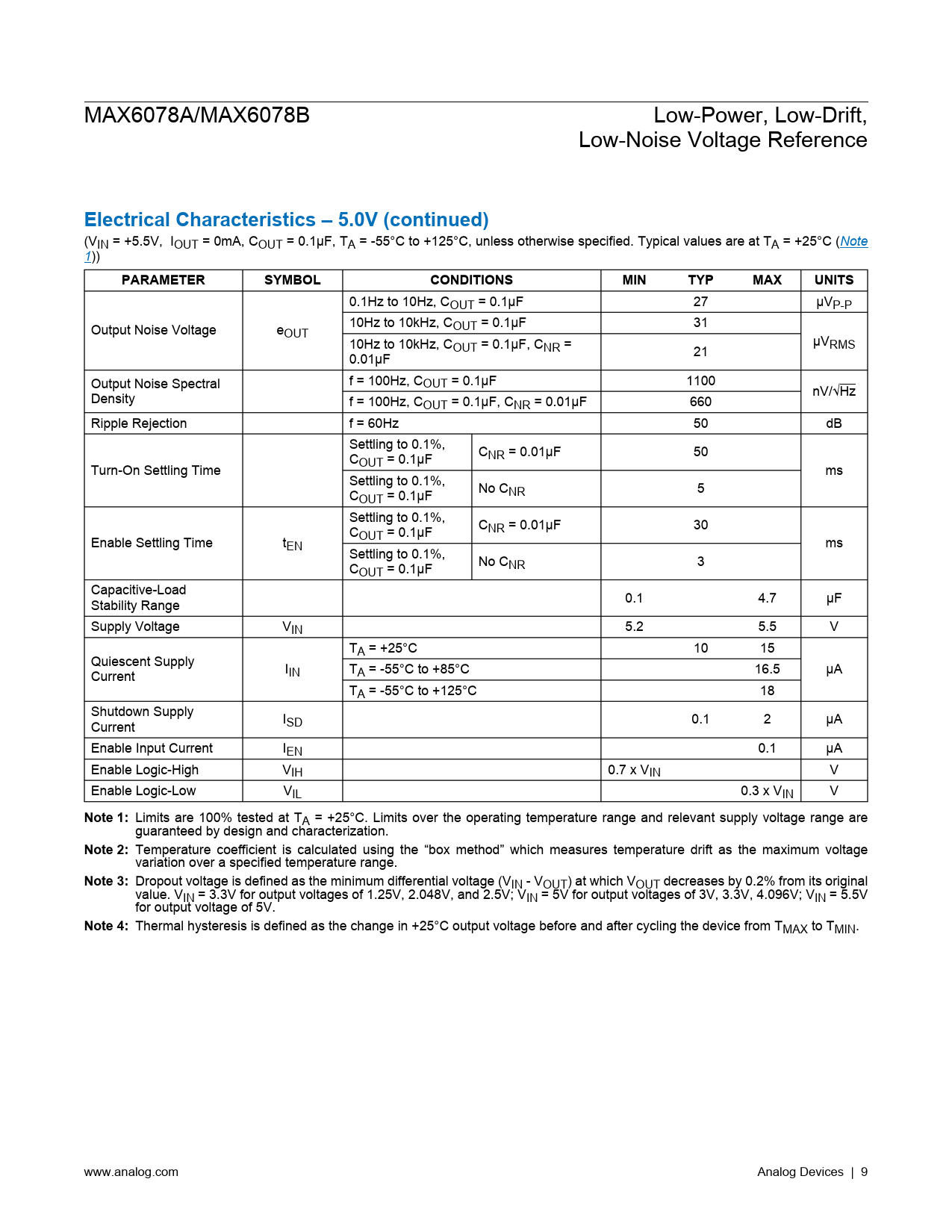 Electrical Characteristics – 5.0V (continued). PARAMETER. SYMBOL. CONDITIONS. MIN. TYP. MAX. UNITS. Note 1:. Note 2:. Note 3:. Note 4:
