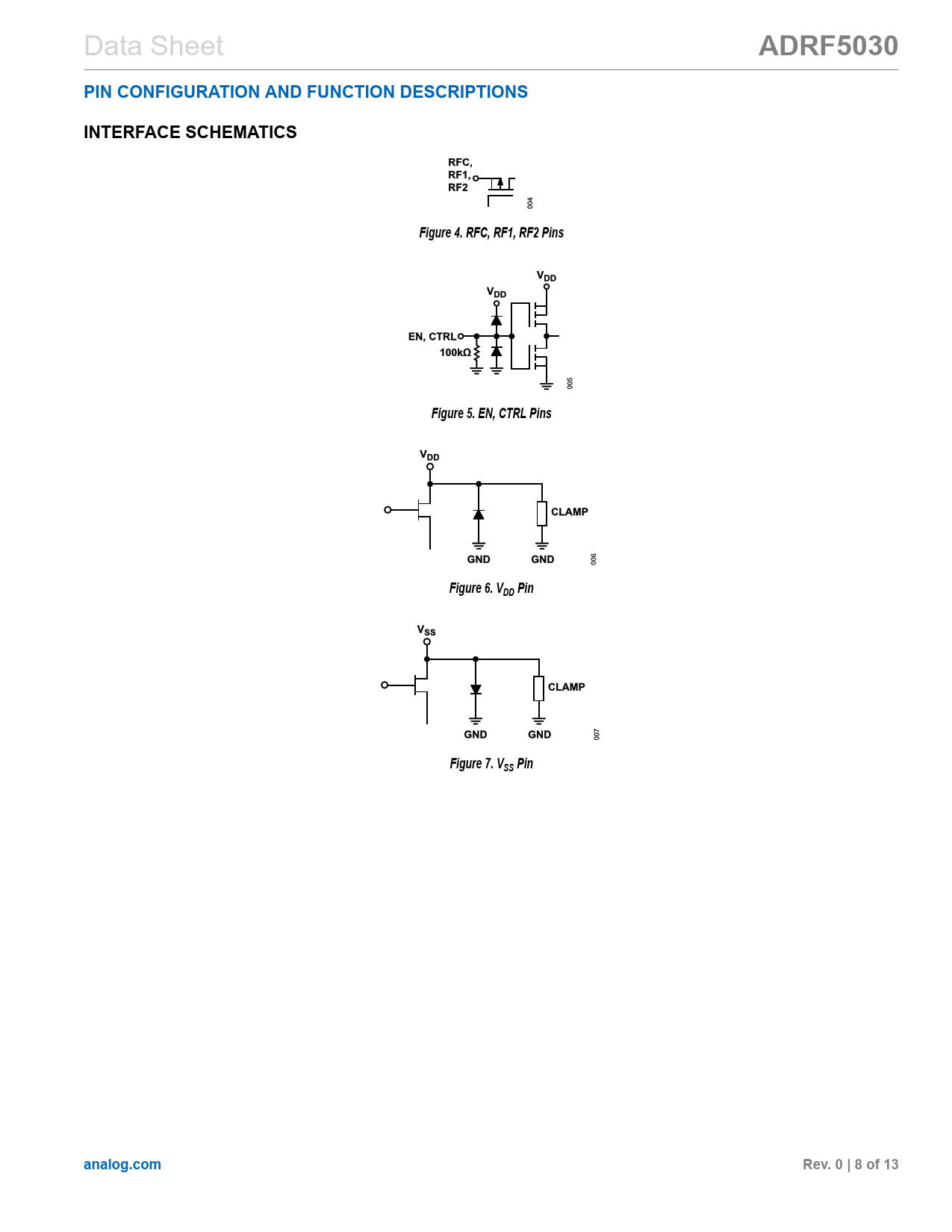 ADRF5030. PIN CONFIGURATION AND FUNCTION DESCRIPTIONS. INTERFACE SCHEMATICS. Figure 4. RFC, RF1, RF2 Pins