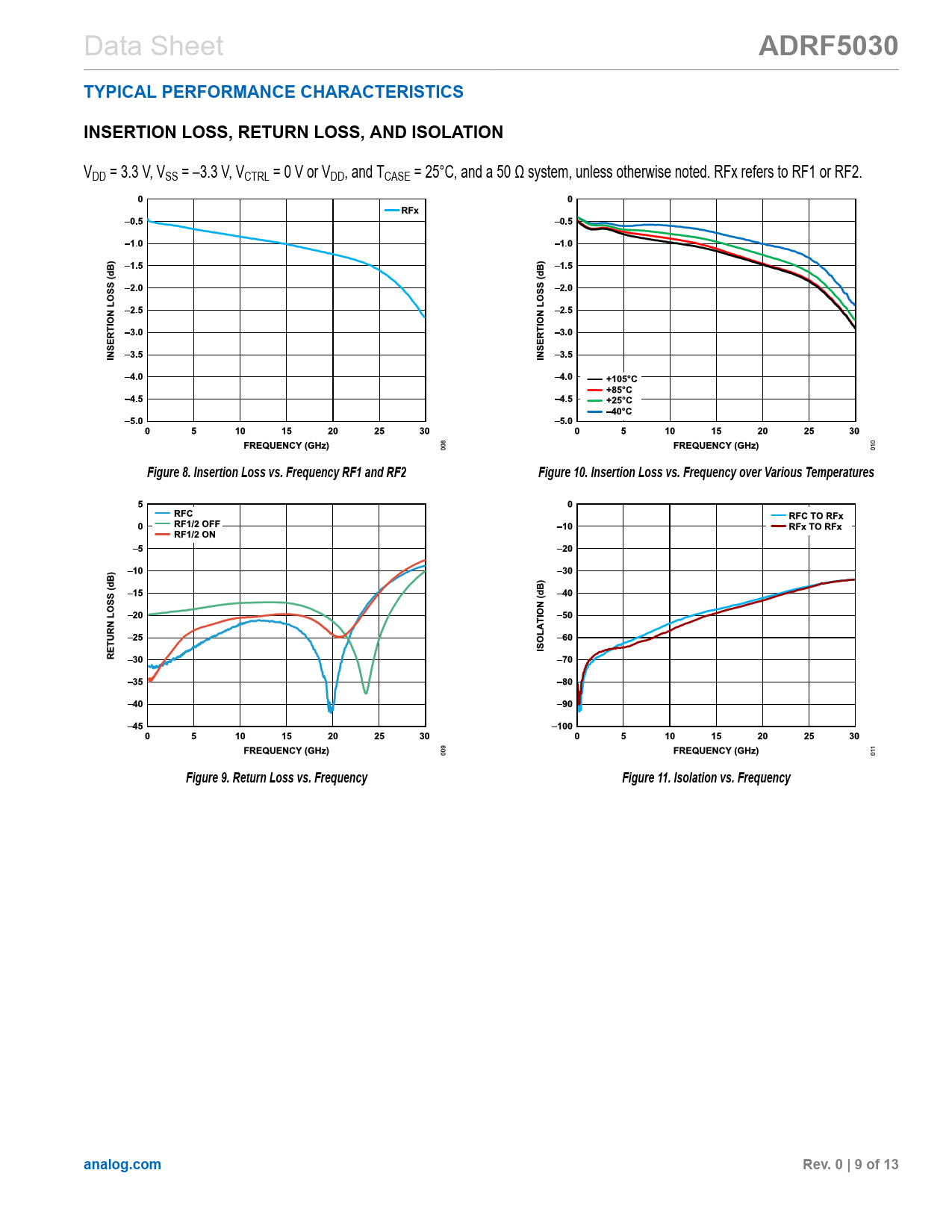 Páginas / Página13 / 9 — ADRF5030. TYPICAL PERFORMANCE CHARACTERISTICS. INSERTION LOSS, RETURN …