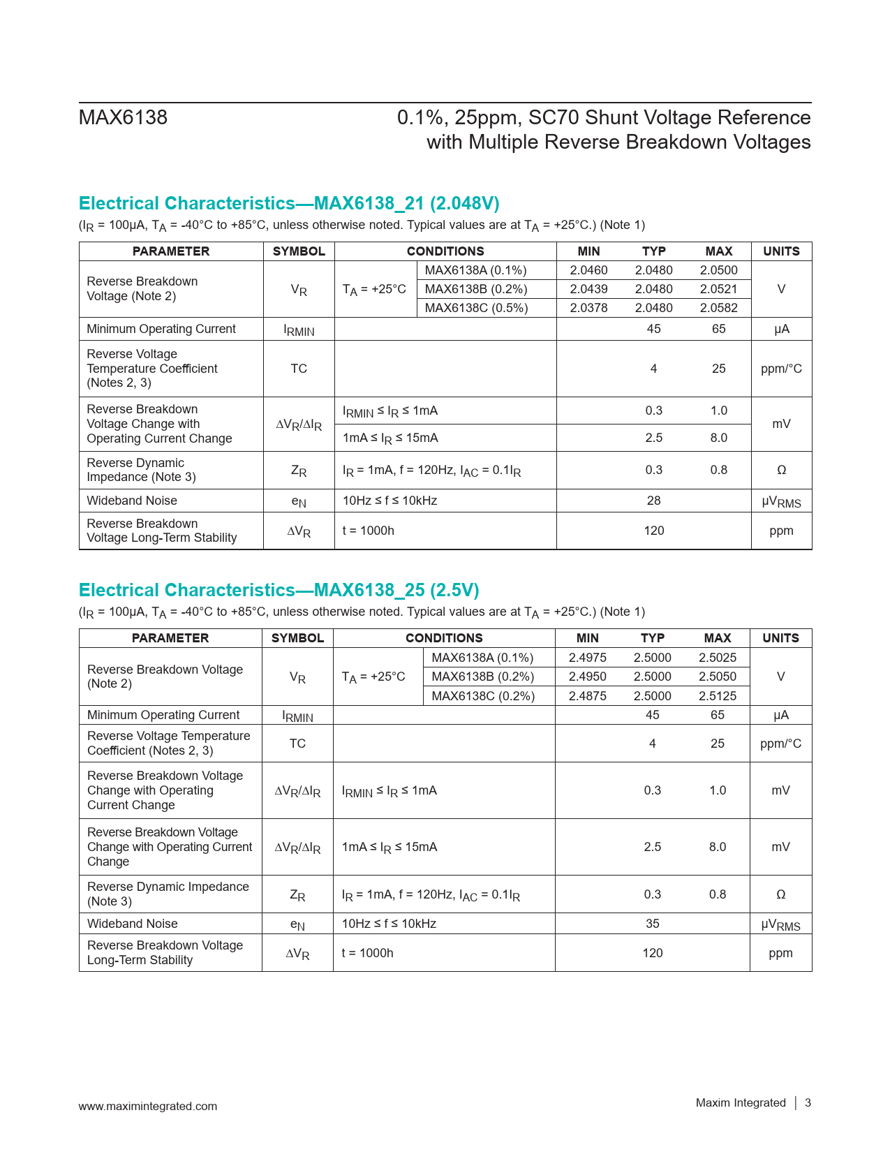 | Páginas / Página | 13 / 3 — Electrical Characteristics—MAX6138_21 (2.048V). PARAMETER. SYMBOL. … |