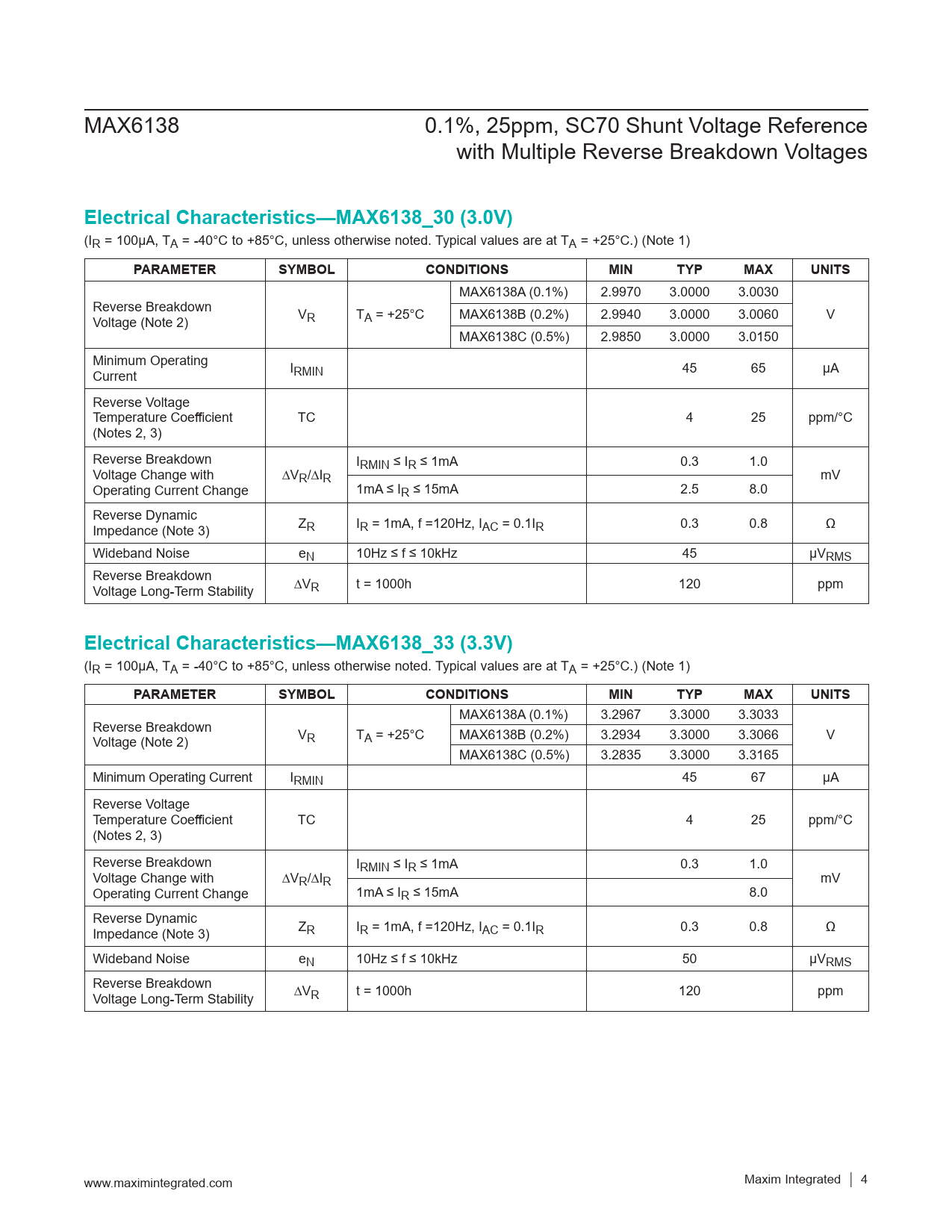 | Páginas / Página | 13 / 4 — Electrical Characteristics—MAX6138_30 (3.0V). PARAMETER. SYMBOL. … |