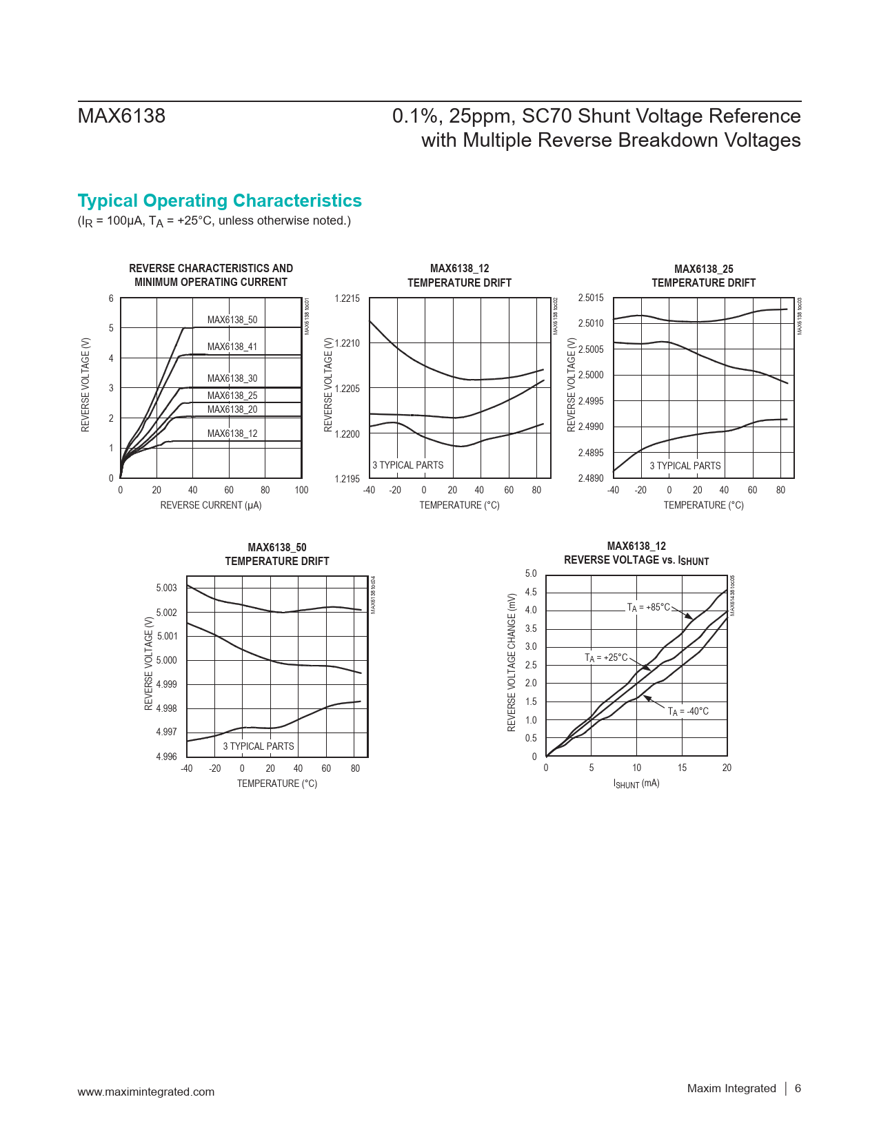 Typical Operating Characteristics. REVERSE CHARACTERISTICS AND. MAX6138_12. MAX6138_25. MINIMUM OPERATING CURRENT