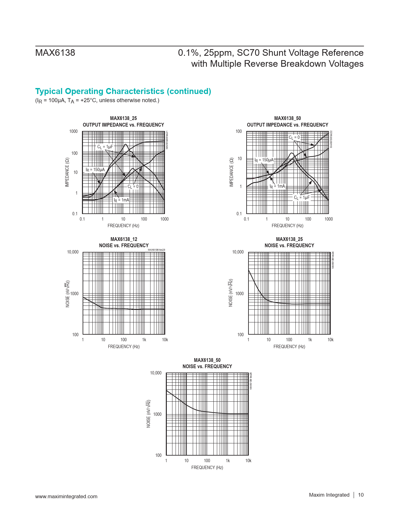 10,000 MAX6138 toc25 ) √Hz 1000 NOISE (nV/ 100 1 10 100 1k 10k FREQUENCY (Hz) www.maximintegrated.com Maxim Integrated │ 10