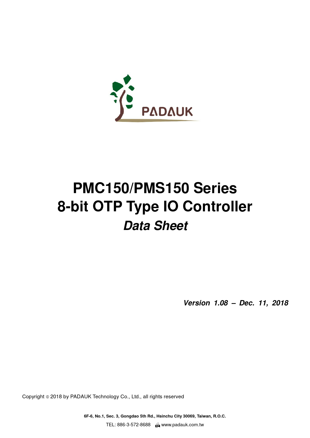 Data Sheet Version 1.08 – Dec. 11, 2018 Copyright 2018 by PADAUK Technology Co., Ltd., all rights reserved 6F-6, No.1, Sec. 3, Gongdao 5th Rd., Hsinchu City 30069, Taiwan, R.O.C. TEL: 886-3-572-8688  www.padauk.com.tw