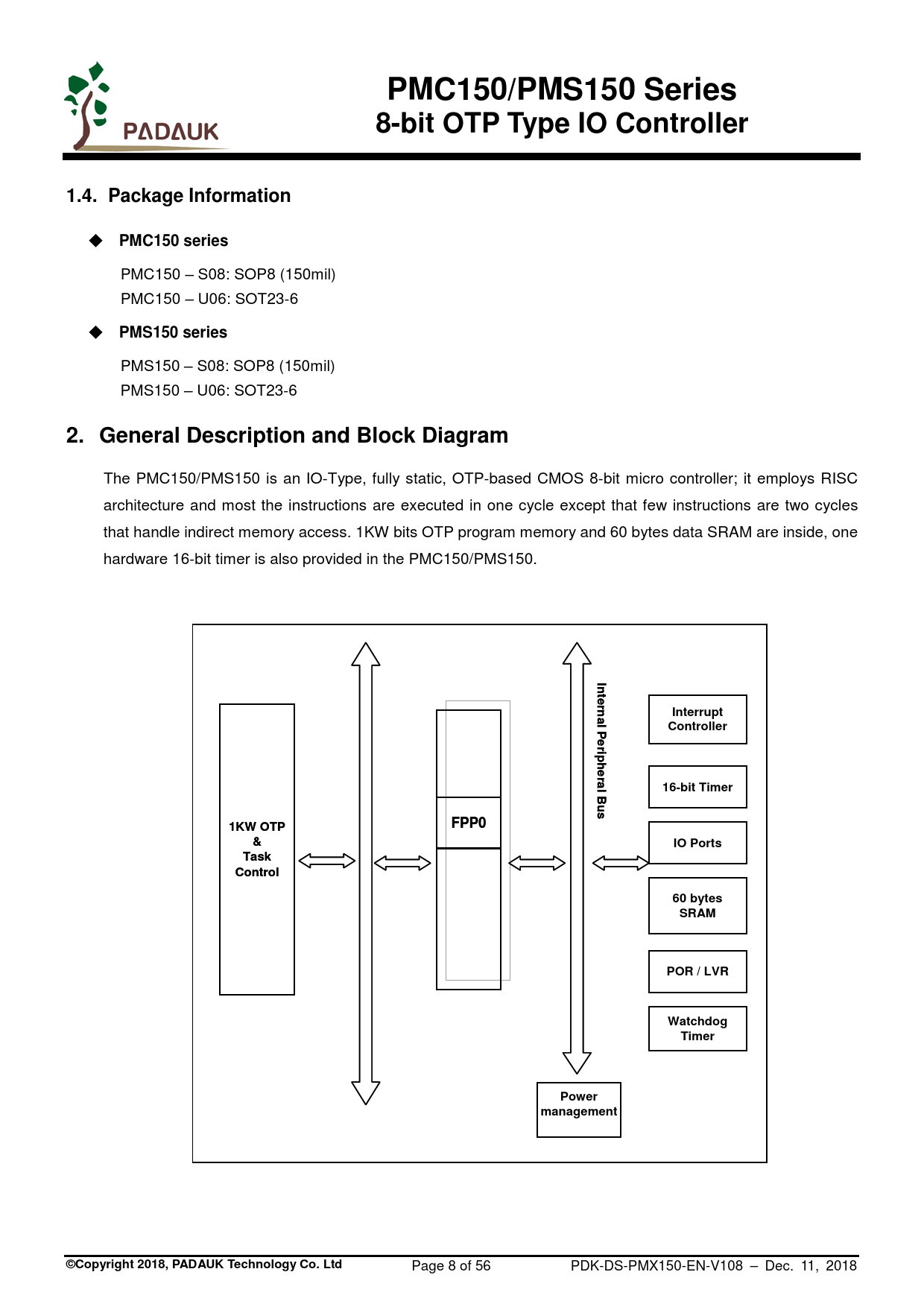 management ©Copyright 2018, PADAUK Technology Co. Ltd Page 8 of 56 PDK-DS-PMX150-EN-V108 – Dec. 11, 2018