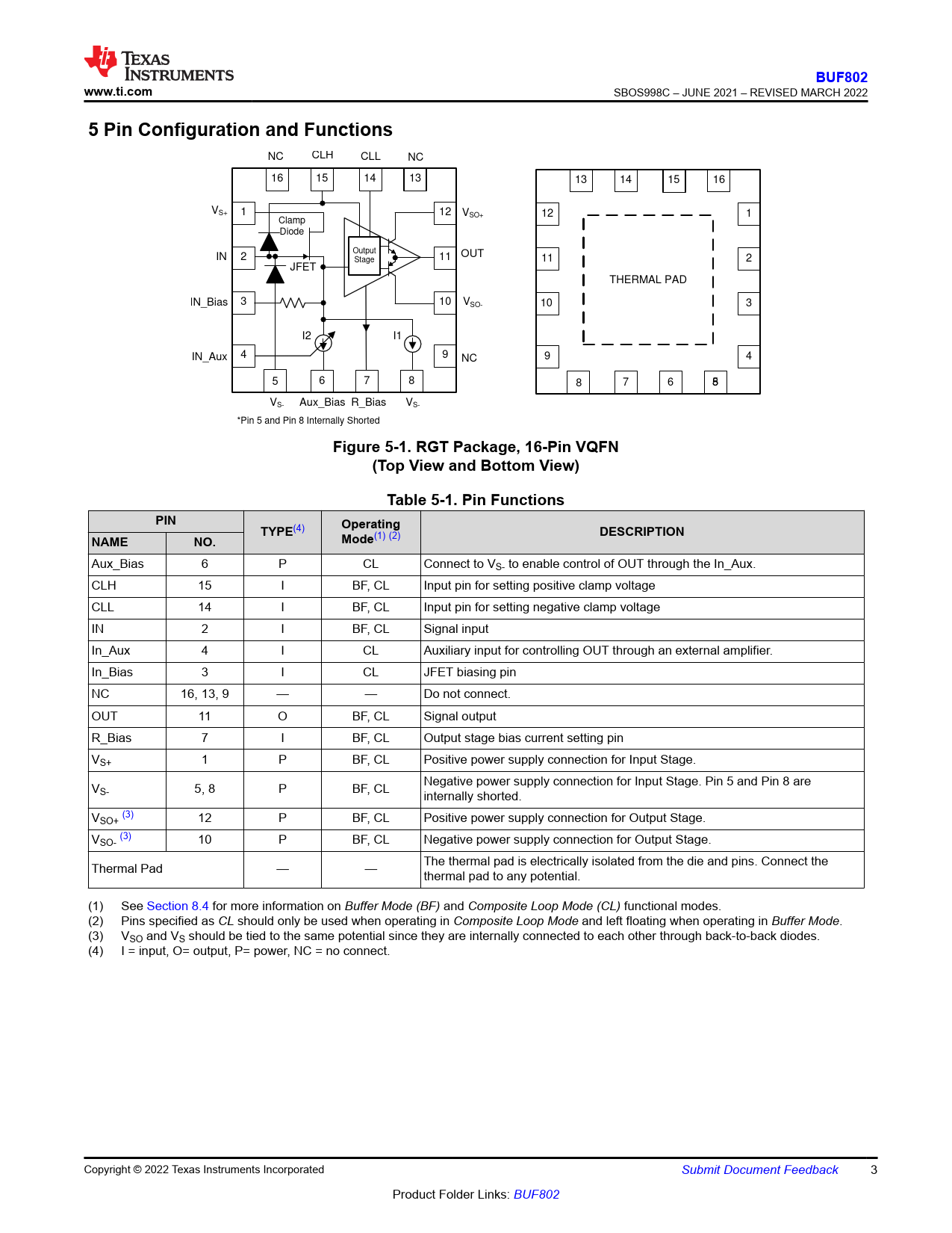 BUF802. www.ti.com. 5 Pin Configuration and Functions. Figure 5-1. RGT Package, 16-Pin VQFN. (Top View and Bottom View)
