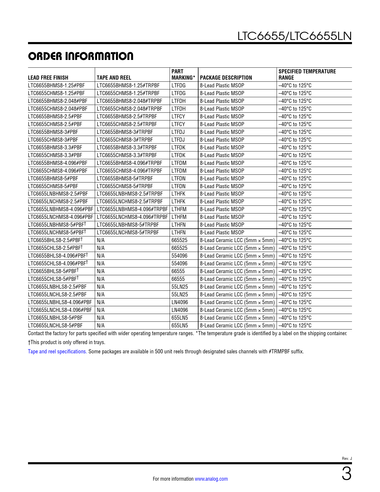 Datasheet LTC6655, LTC6655LN (Analog Devices) - 3