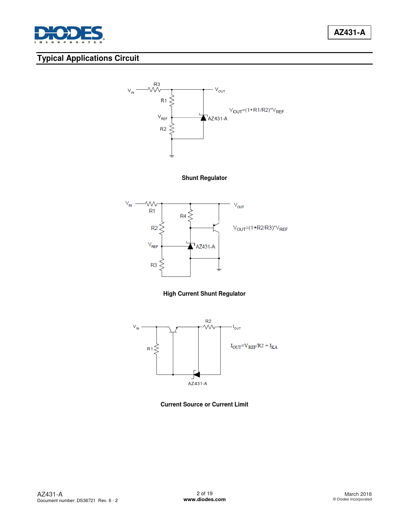 | Páginas / Página | 19 / 2 — AZ431-A. Typical Applications Circuit. Shunt Regulator. High Current … |