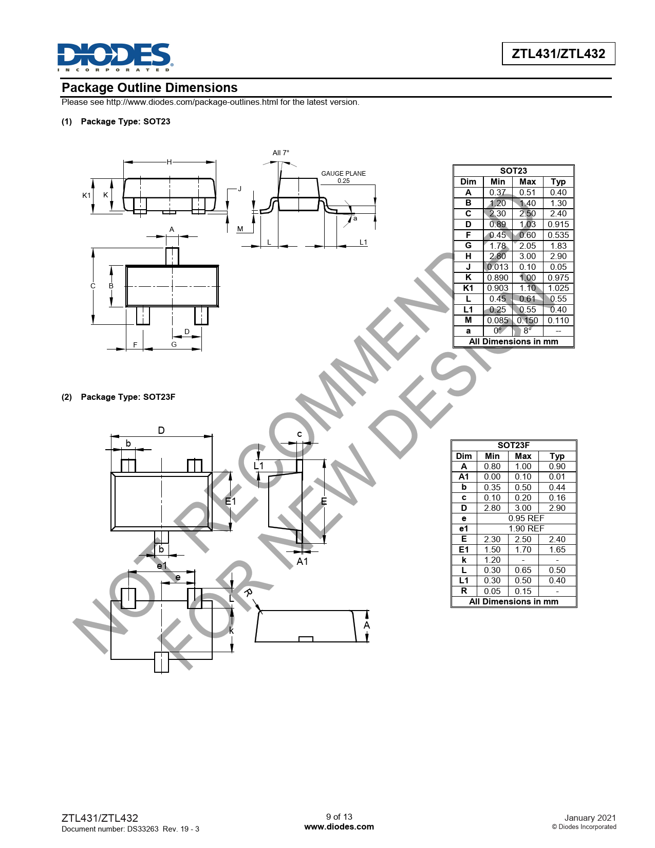 ZTL431/ZTL432. Package Outline Dimensions. (1) Package Type: SOT23. SOT23. Dim Min Max. Typ. All Dimensions in mm