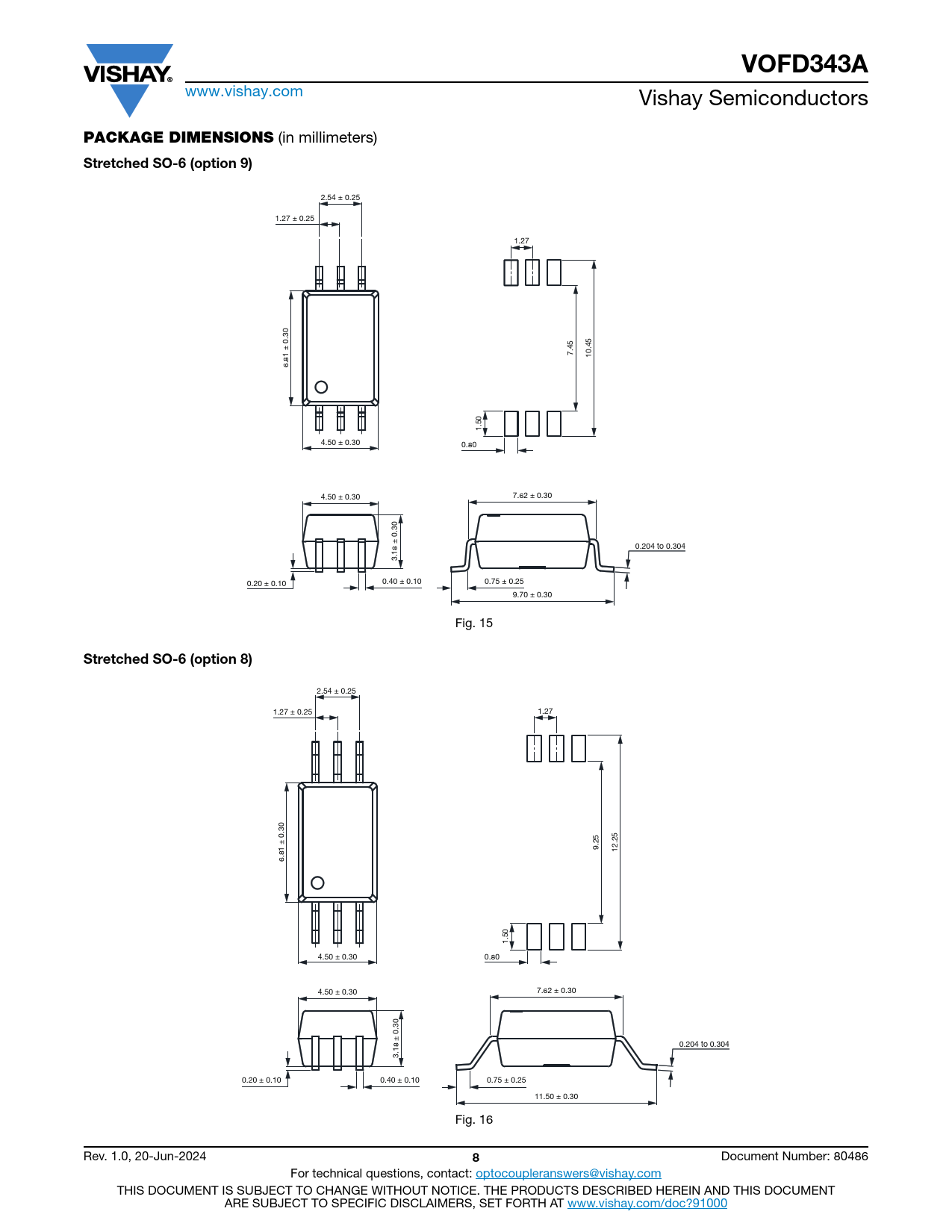 VOFD343A. PACKAGE DIMENSIONS. Stretched SO-6 (option 9). Stretched SO-6 (option 8)