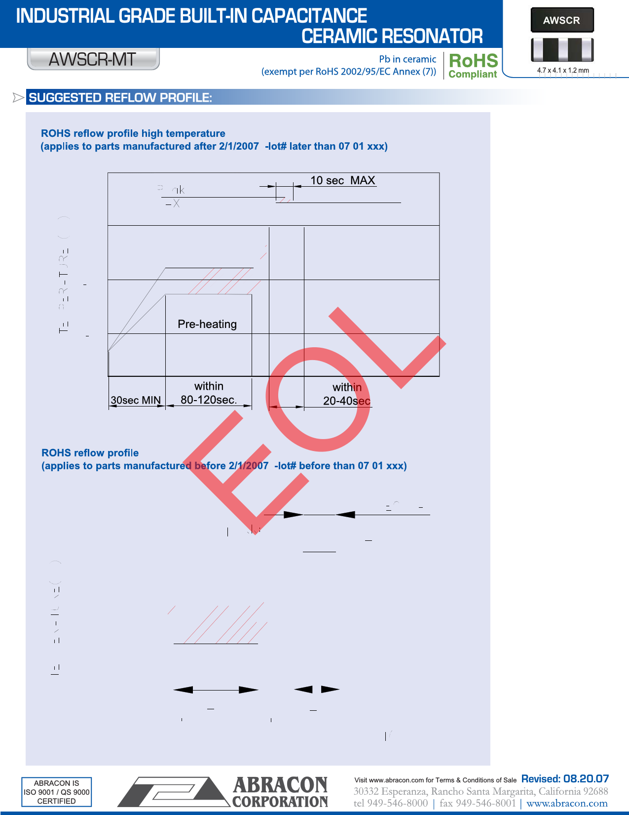 | Descripción | Industrial Grade Built-in Capacitance Ceramic Resonator |