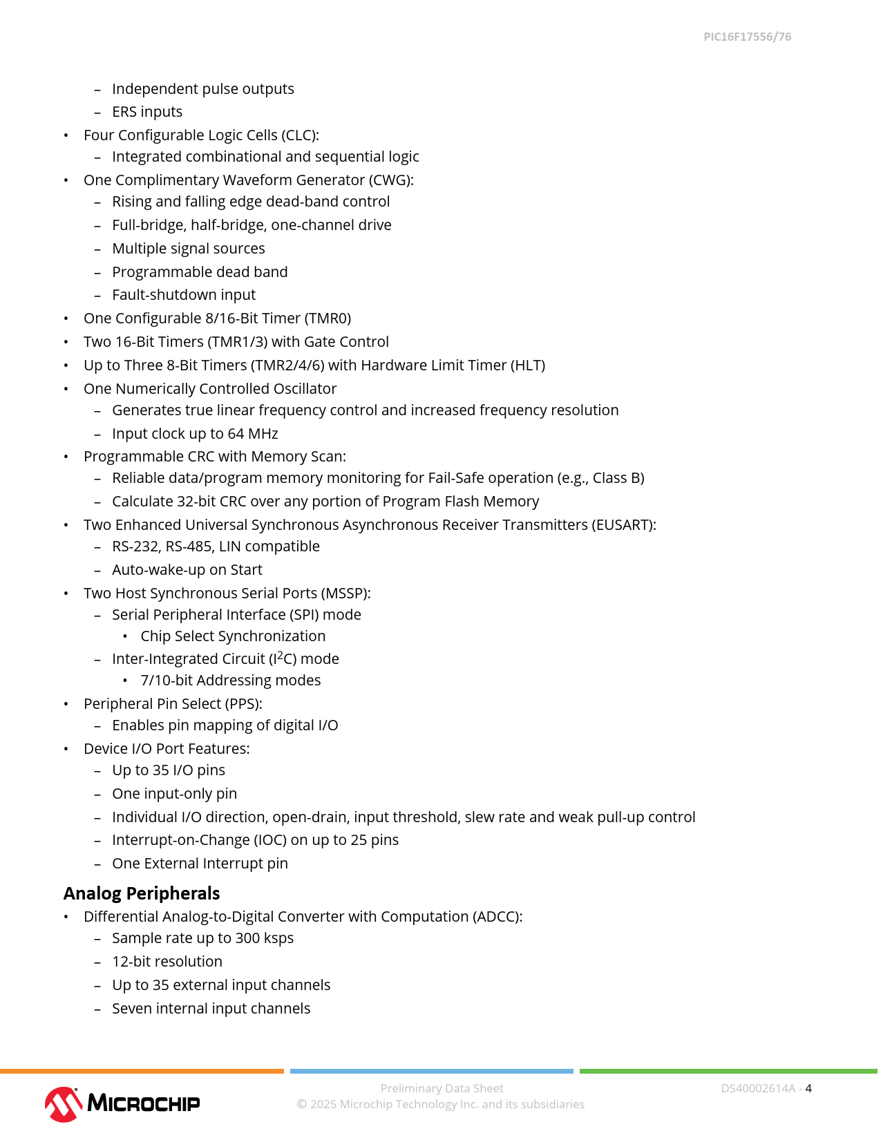 Datasheet PIC16F17556, PIC16F17576 (Microchip) - 4
