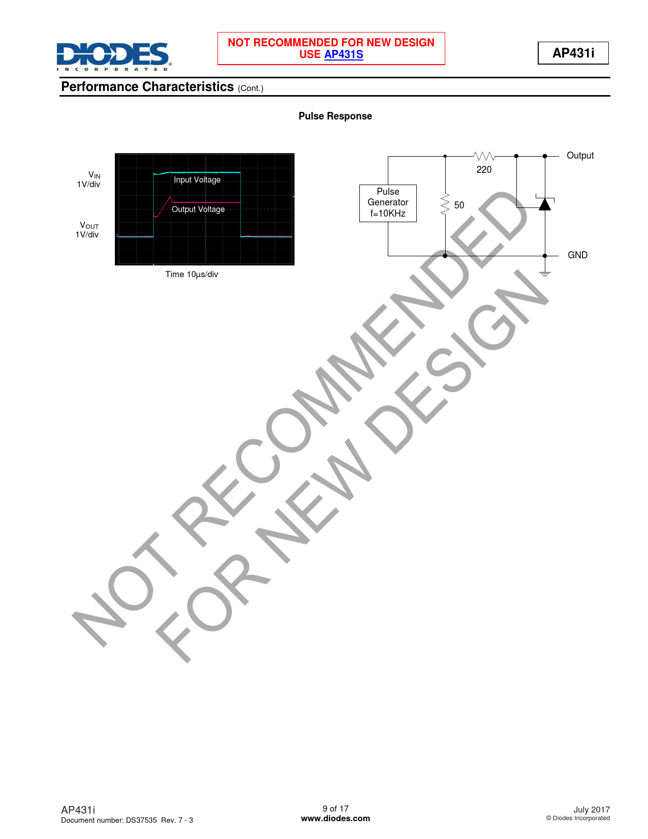 NOT RECOMMENDED FOR NEW DESIGN. USE AP431S. AP431i. Performance Characteristics. Pulse Response. www.diodes.com