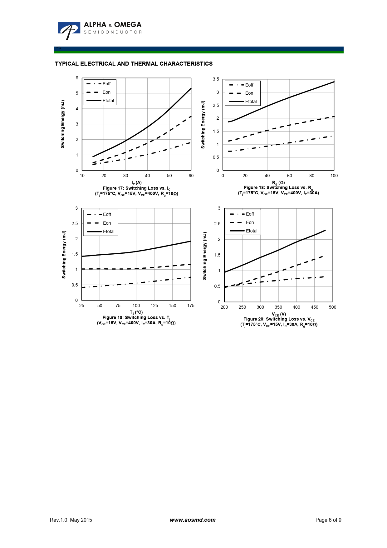 TYPICAL ELECTRICAL AND THERMAL CHARACTERISTICS. ) J. (m y. rg e. itc. I (A). R (. Figure 17: Switching Loss vs. I