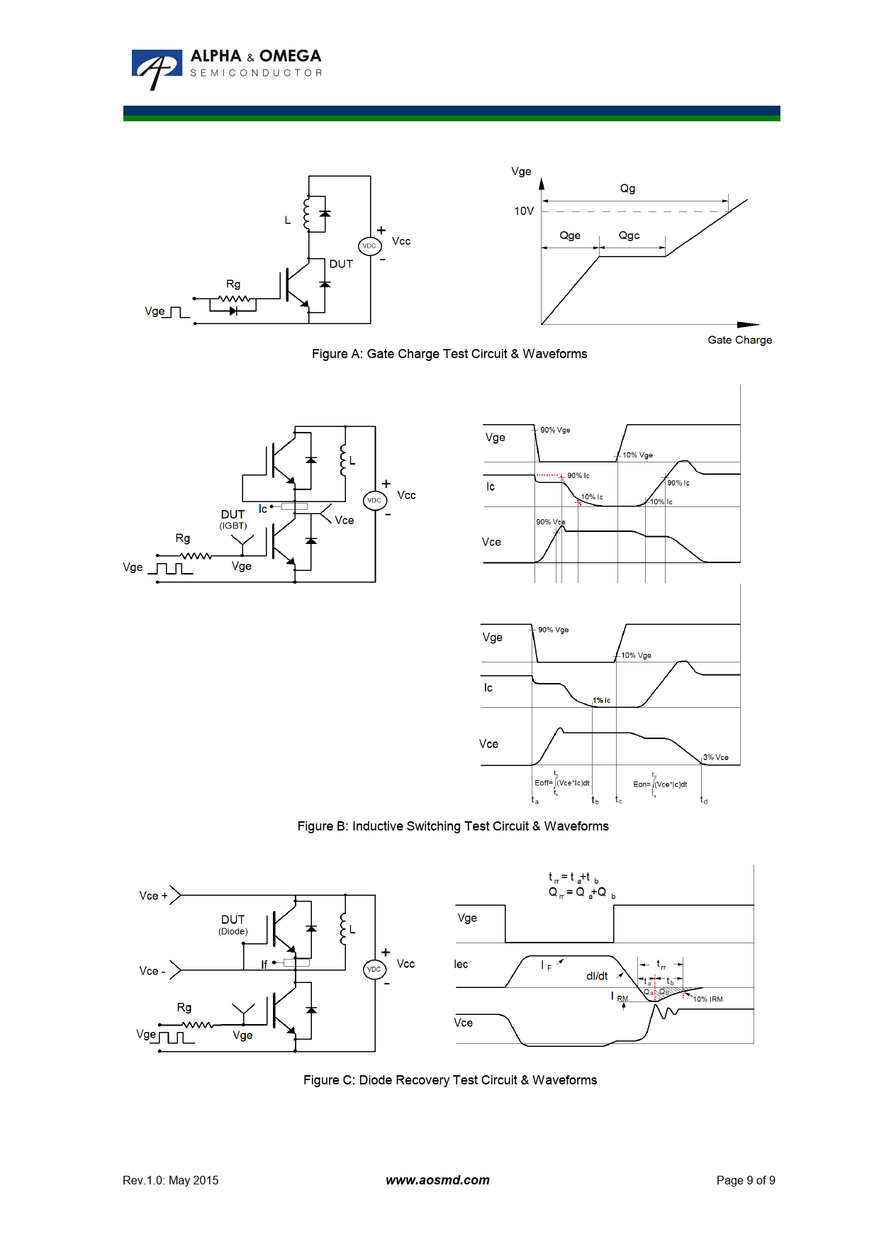 Figure A: Gate Charge Test Circuit & Waveforms Figure B: Inductive Switching Test Circuit & Waveforms Figure C: Diode Recovery Test Circuit & Waveforms Rev.1.0: May 2015