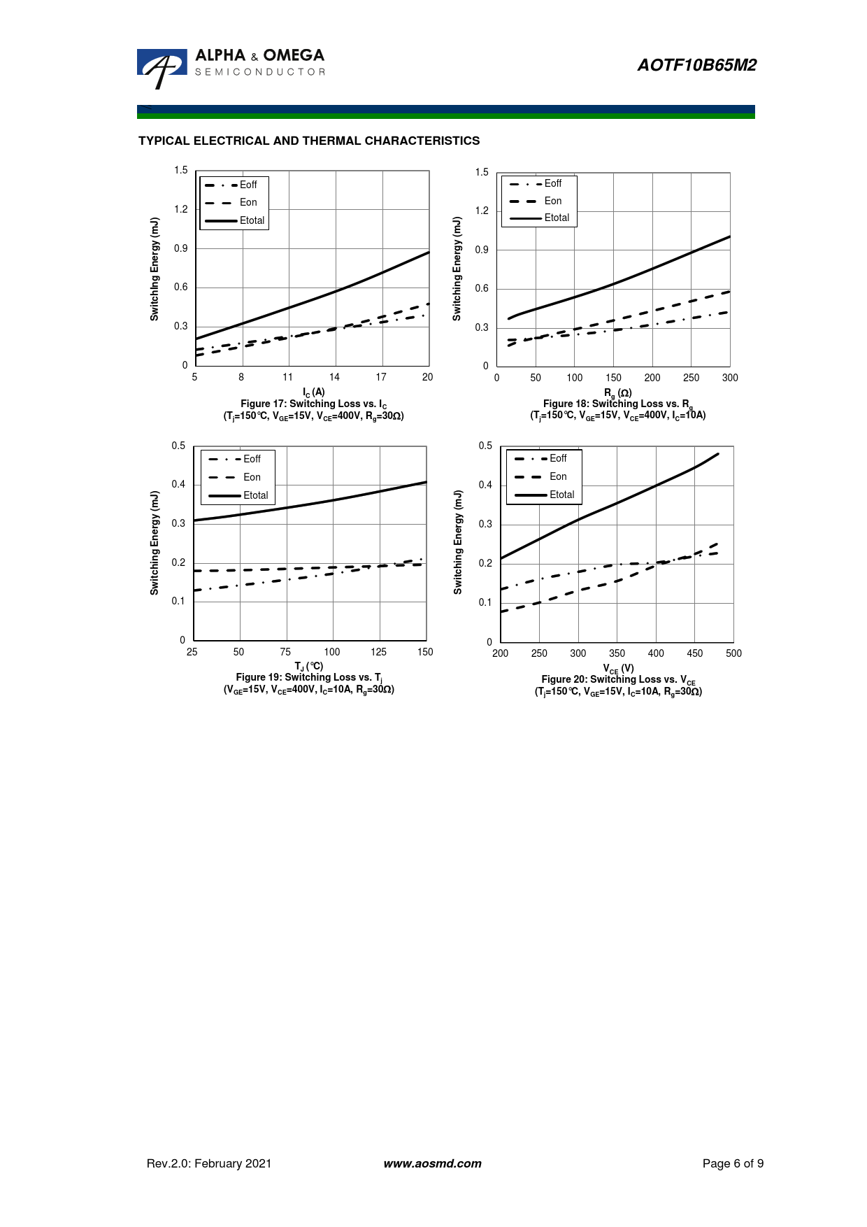 AOTF10B65M2. TYPICAL ELECTRICAL AND THERMAL CHARACTERISTICS. rgy. ne E. Ene. hi c. itc. w S. I (A). R (. Figure 17: Switching Loss vs. I
