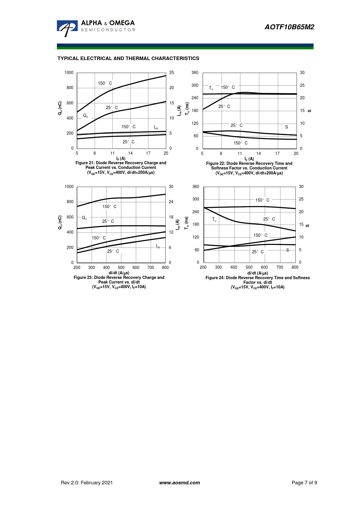 AOTF10B65M2. TYPICAL ELECTRICAL AND THERMAL CHARACTERISTICS. (nC). (ns. I rm. I (A). Figure 21: Diode Reverse Recovery Charge and