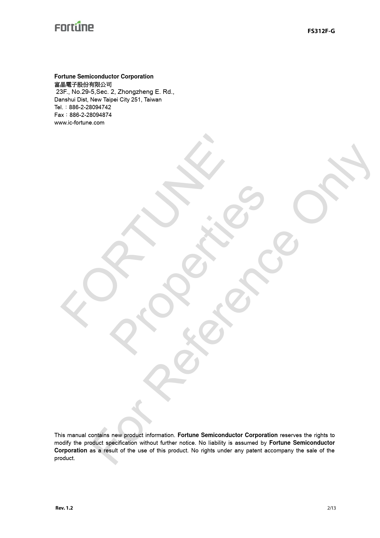 Páginas / Página13 / 2 — Fortune Semiconductor Corporation. 富晶電子股份有限公司 23F., No.29-5,Sec. 2, …