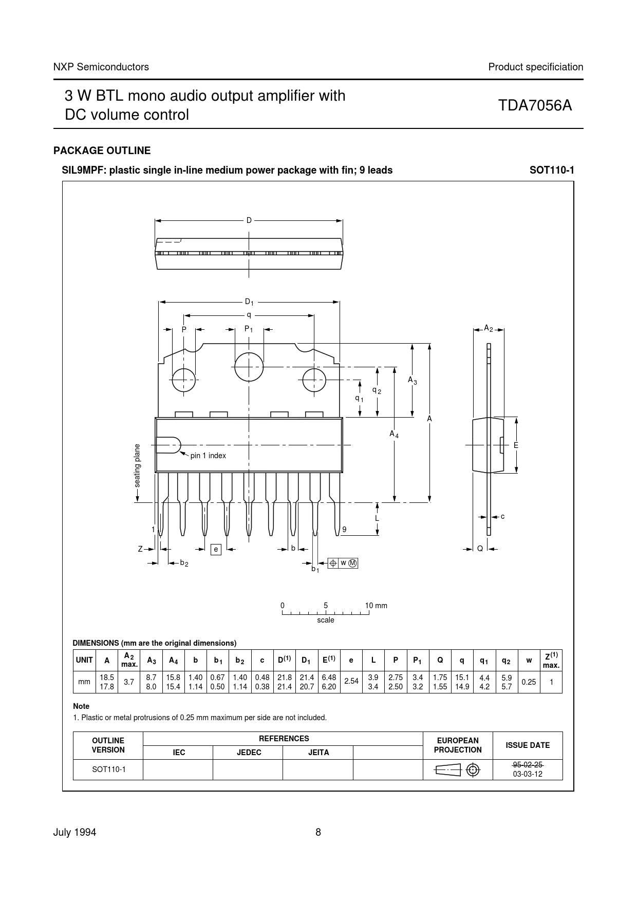 Páginas / Página11 / 8 — PACKAGE OUTLINE. SIL9MPF: plastic single in-line medium power package …