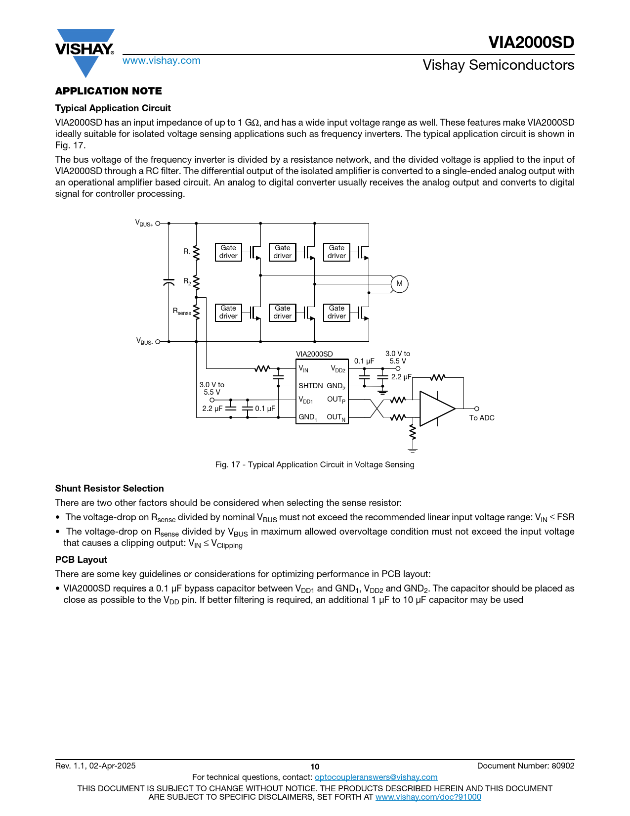 VIA2000SD APPLICATION NOTE Typical Application Circuit Shunt Resistor Selection PCB Layout