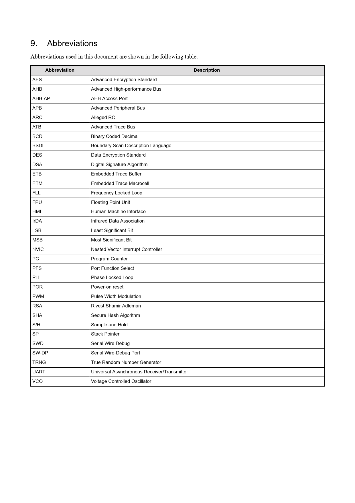 9. Abbreviations Abbreviations used in this document are shown in the following table.