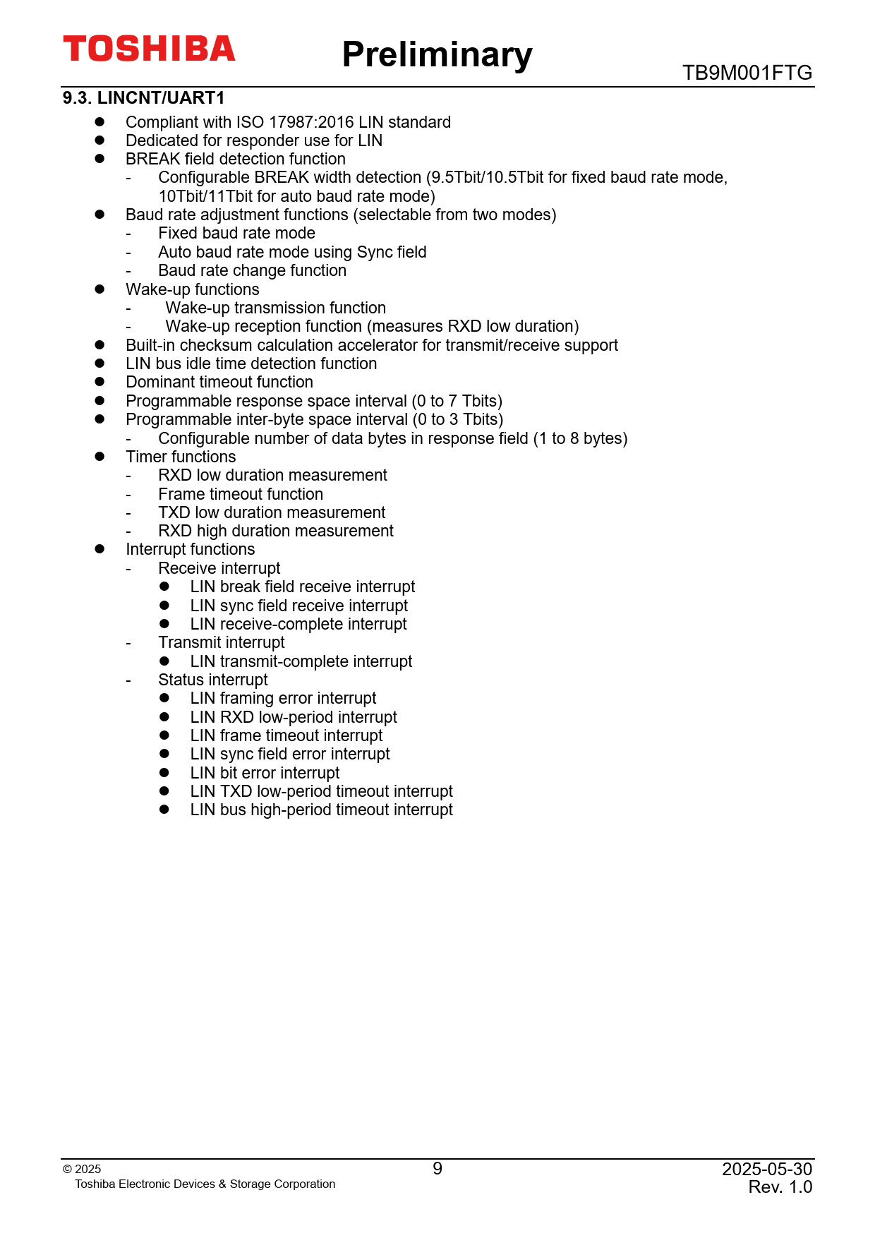 Preliminary. 9.3. LINCNT/UART1