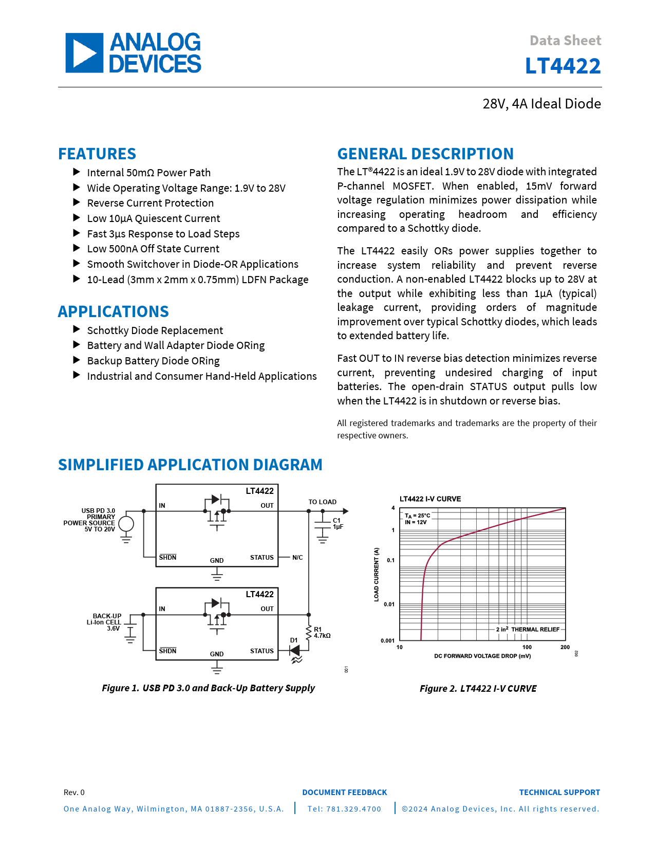 Data Sheet. LT4422. FEATURES. GENERAL DESCRIPTION. APPLICATIONS. SIMPLIFIED APPLICATION DIAGRAM. TO LOAD. OUT. USB PD 3.0. PRIMARY