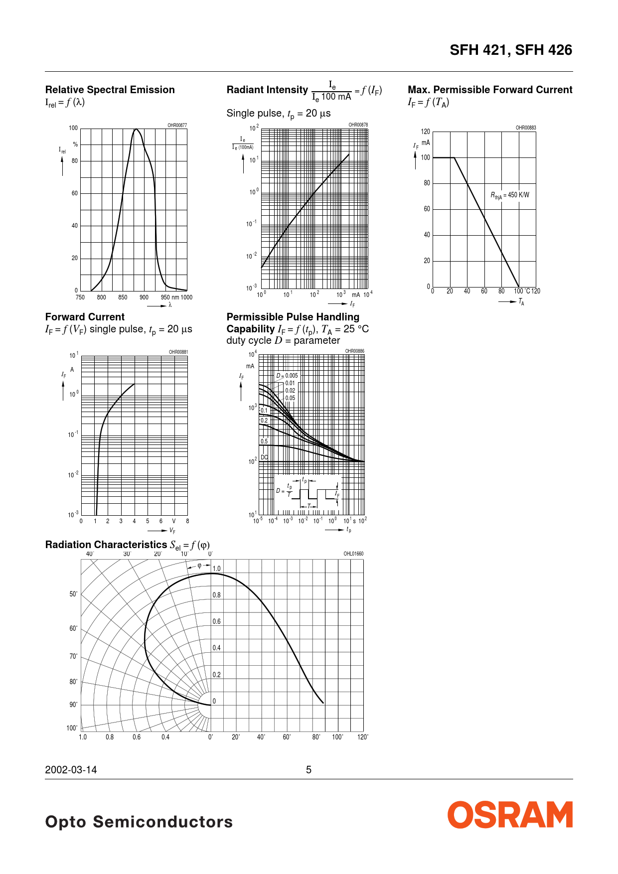 Páginas / Página7 / 5 — SFH 421, SFH 426. Relative Spectral Emission. Radiant Intensity. Max. …