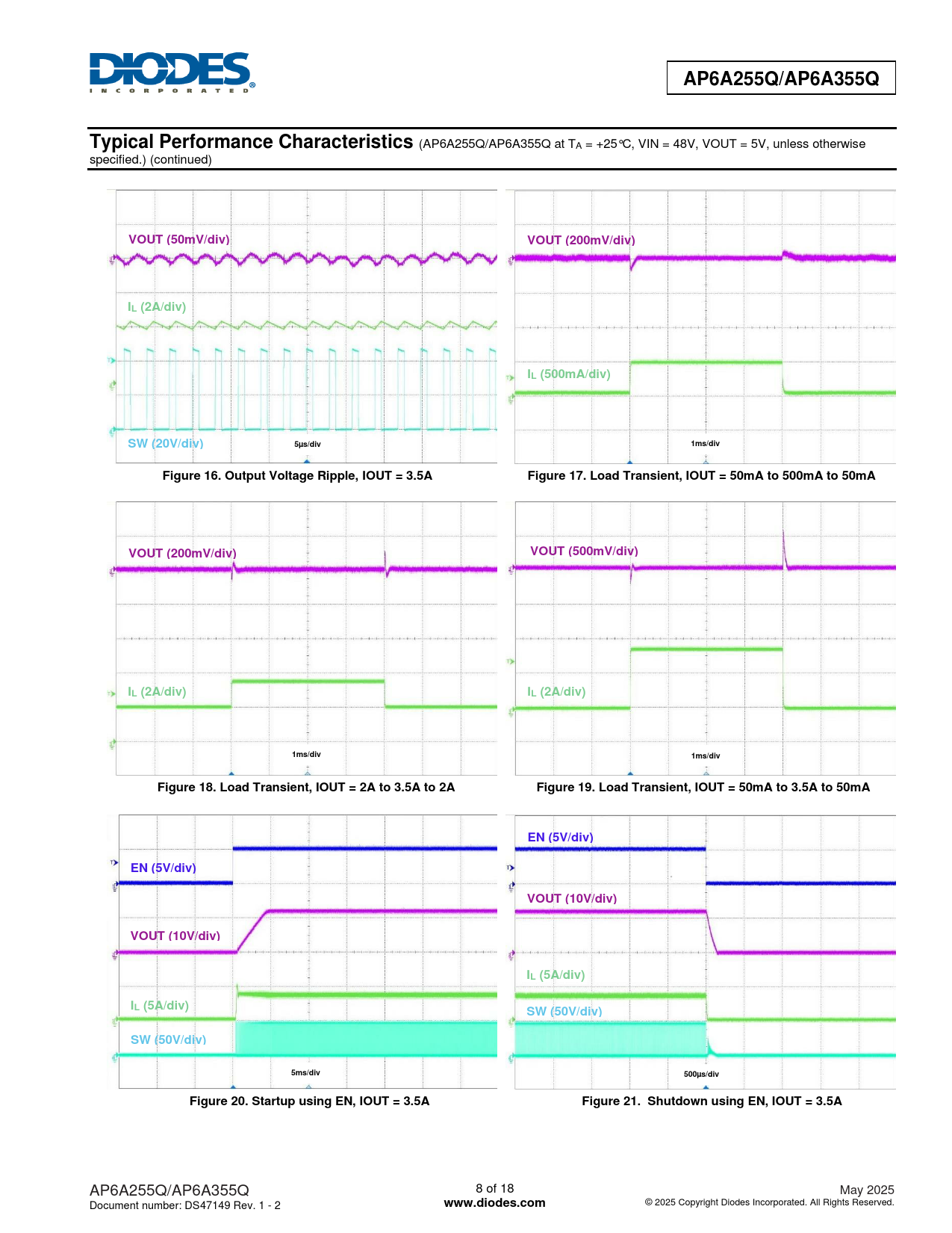| Páginas / Página | 18 / 8 — AP6A255Q/AP6A355Q. Typical Performance Characteristics. VOUT (50mV/div). … |