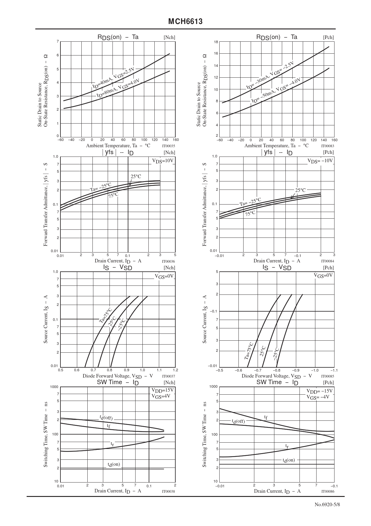 MCH6613. RDS(on) -Ta 18 Static Drain to Source. On-State Resistance, RDS(on) -Ω 6 5 V 5. =2. V GS A,. 40m. =4.0. I D=. , VGS. 80m