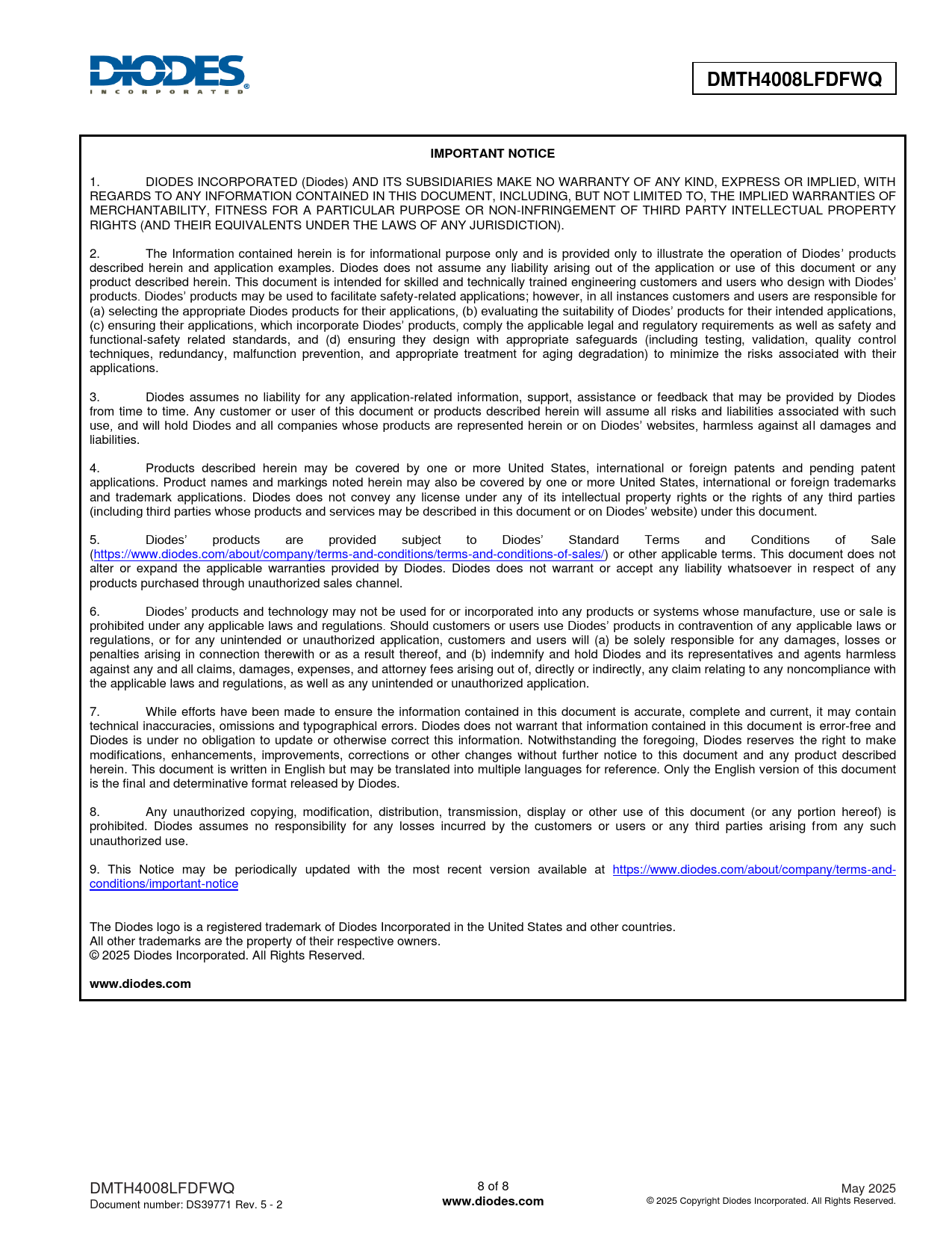 | Páginas / Página | 8 / 8 — DMTH4008LFDFWQ. IMPORTANT NOTICE. www.diodes.com |
