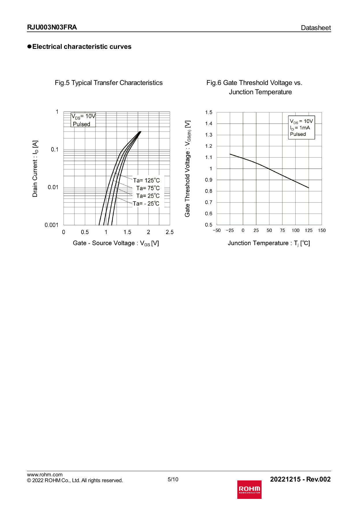 Fig.5 Typical Transfer Characteristics Fig.6 Gate Threshold Voltage vs. Junction Temperature www.rohm.com © 2022 ROHM Co., Ltd. All rights reserved. 5/10