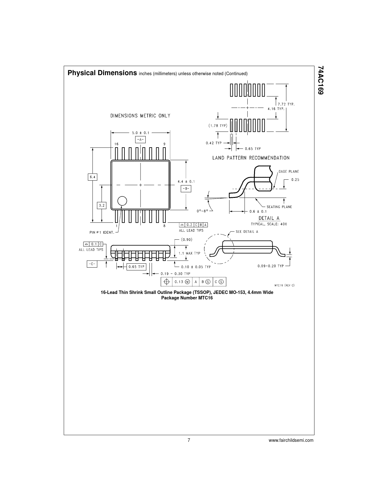 74 A. Physical Dimensions. C 16 9. 16-Lead Thin Shrink Small Outline Package (TSSOP), JEDEC MO-153, 4.4mm Wide