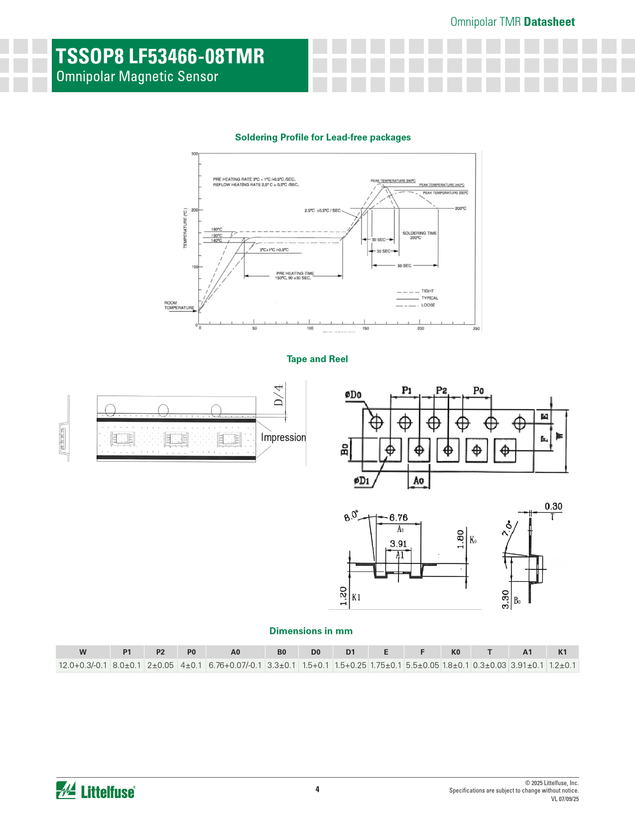 Datasheet. TSSOP8 LF53466-08TMR. Soldering Profile for Lead-free packages. Tape and Reel. Dimensions in mm